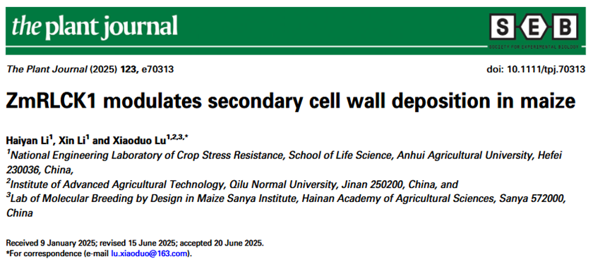 这项研究不仅深化了对植物次生细胞壁调控机制的理解,还为玉米育种提供了新的基因资源。通过调控ZmRLCK1的表达或功能,未来有望培育出抗旱性更强、水分利用效率更高的玉米新品种,为全球粮食安全提供保障。