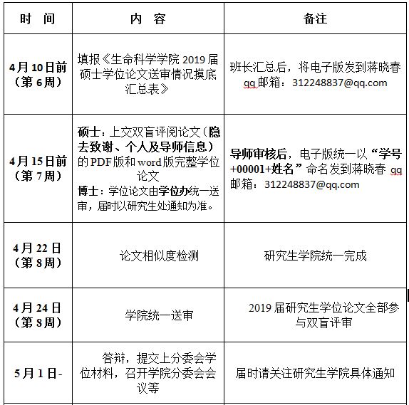 生命科学学院2019届研究生学位论文双盲评审初步安排