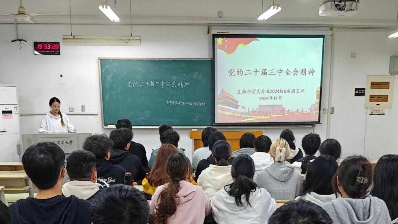 青春因报国为民而更加瑰丽,青年因使命在肩而更显勇毅。24级生物科学类4班团支部在主题团日的开展中对“青年学子深入学习党的二十届三中全会精神的现实意义”展开讨论。同学们表示,青春与国家命运紧密相连,青年一代应当自觉学习贯彻好党的二十届三中全会精神,永远听党话、跟党走,踏实学好专业知识,充分发挥专业本领,争做新时代的担当者、创新者、奋斗者,把青春播撒在进一步全面深化改革征程上,让青春为中国式现代化挺膺担当。
