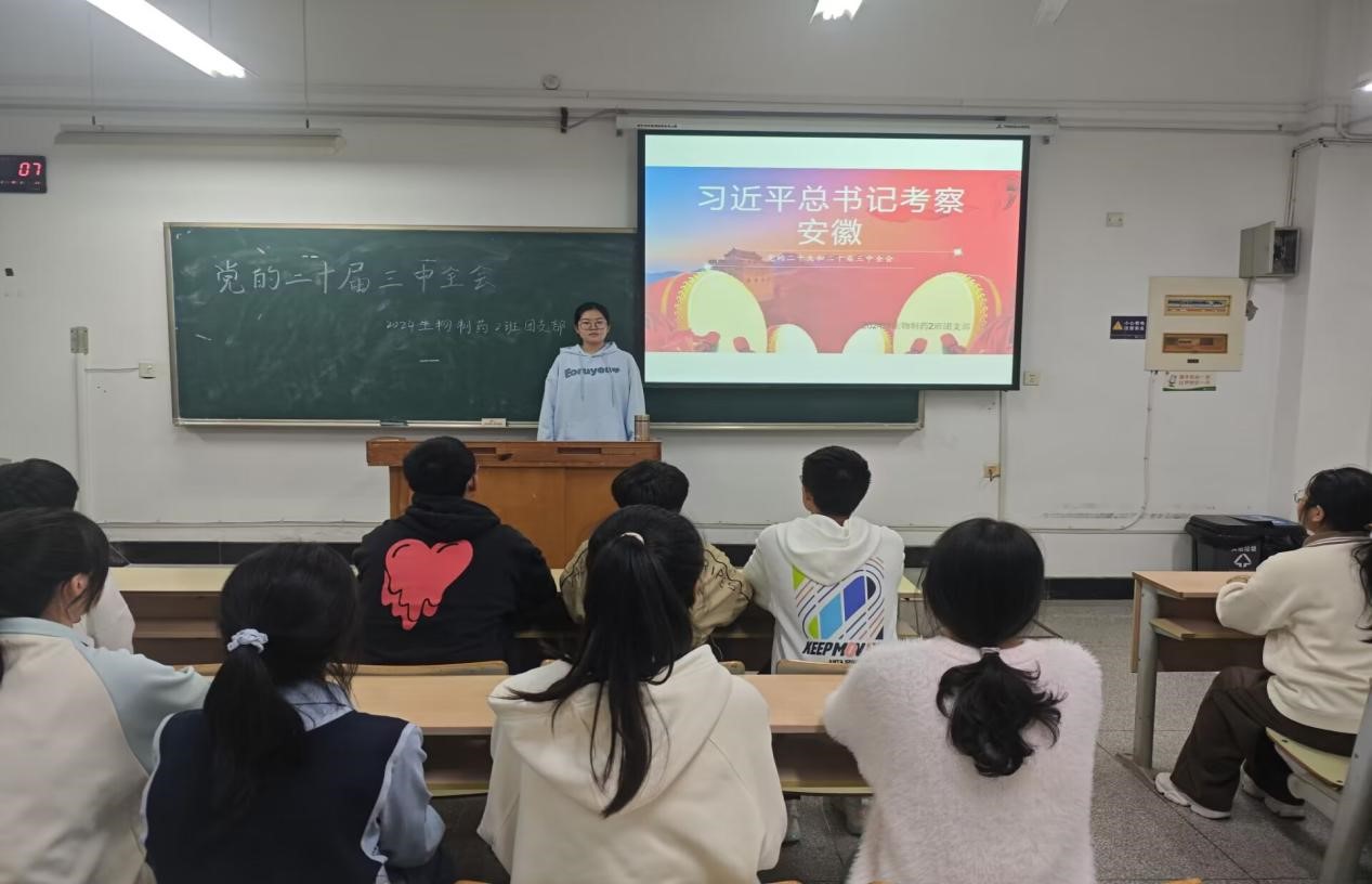 改革潮起风正劲,奋楫扬帆正当时。2024级生物制药2班团支部在主题团日的开展中,以习近平总书记考察安徽为切入点,通过了解从乡村振兴、对外开放到文化传承、科技创新等具体改革措施,深入学习党的二十届三中全会精神,将个人成长与社会发展紧密相连。