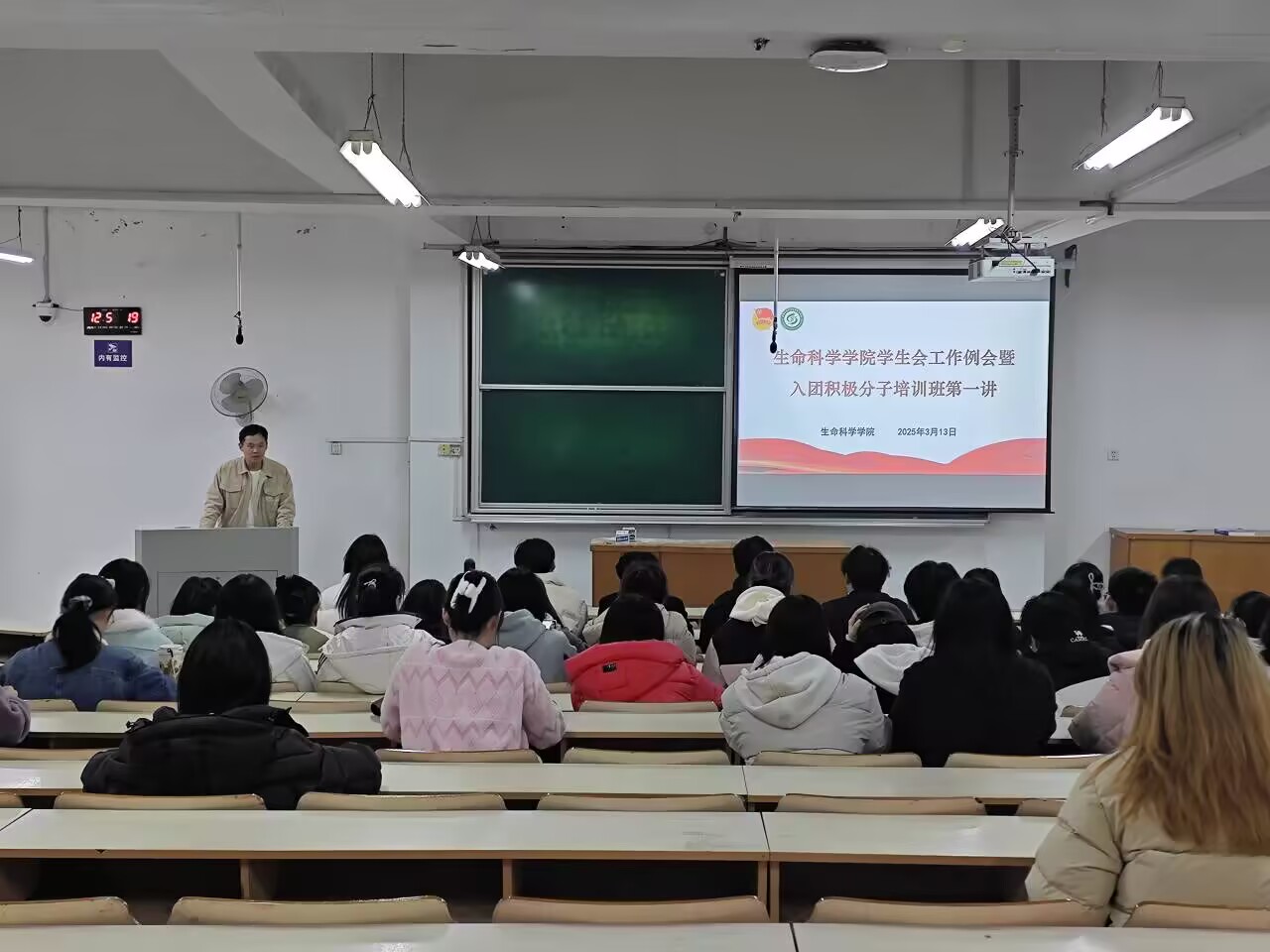 本网讯 为更好规划本学期工作,凝聚学生会力量,同时提升入团积极分子政治素质,3月13日中午,生命科学学院在勤学楼103教室召开院学生会例会暨入团积极分子第一讲,院学生会各部门负责人,全体入团积极分子参加会议,会议由院团学负责老师主持。