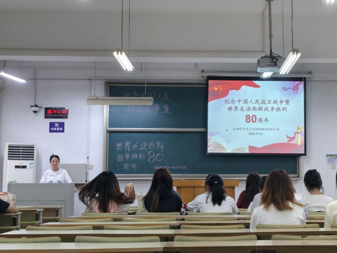 本网讯 为深入学习、传承并弘扬伟大抗战精神,增强广大青年学子铭记历史、致敬先烈的爱国情怀,生命科学学院团委积极响应号召,在纪念中国人民抗日战争暨世界反法西斯战争胜利80周年之际,精心组织全院各团支部开展了主题团日活动。