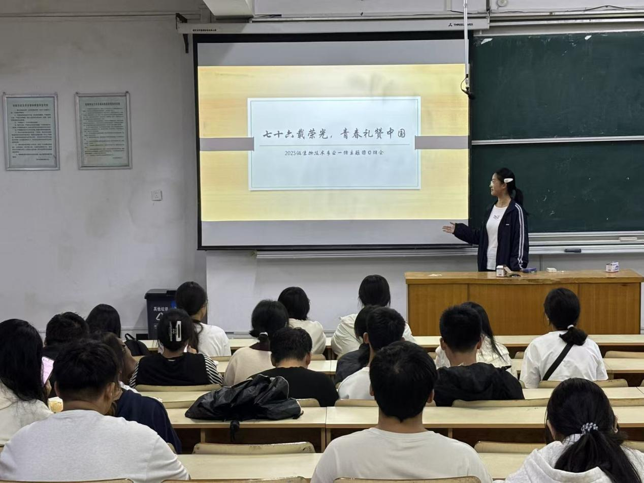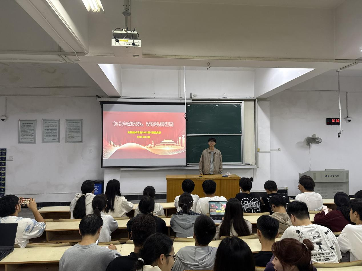 本网讯 为激发广大青年学子砥砺奋斗、勇担使命的家国情怀,引导他们将个人成长自觉融入国家发展的宏伟蓝图,为民族复兴贡献青春力量,生命科学学院团委紧密围绕时代主题,在中华人民共和国成立76周年华诞之际,精心组织全院各团支部在班级开展了“七十六载荣光,青春礼赞祖国”主题团日活动。
