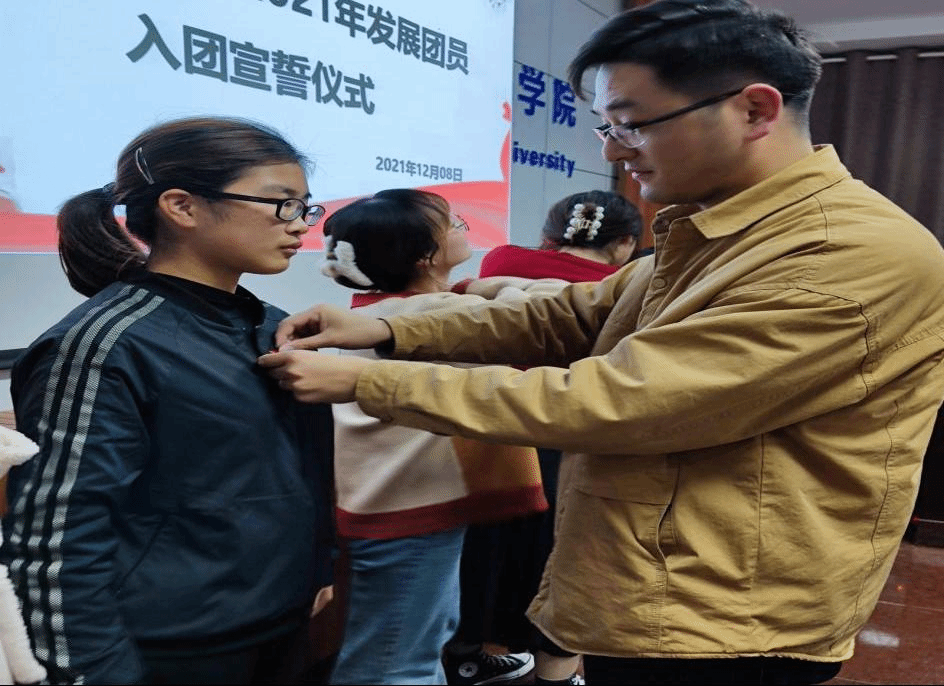 为进一步增强团组织的凝聚力和战斗力,树立新团员的集体荣誉感,引导团员不忘初心、牢记使命,生命科学学院于2021年12月8日晚在十教418会议室举行了庄严的新团员入团仪式。入团仪式在激昂的共青团团歌中拉开帷幕,由学院团委副书记宣读新团员名单,为新团员佩戴团徽,带领新团员面对团旗庄严宣誓。
