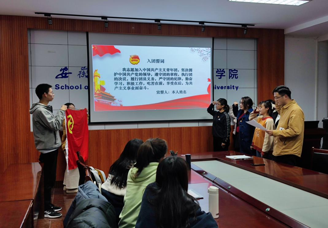 会议中。学院团委副书记对新团员提出希望和要求,勉励新入团的同学要以更高标准严格要求自己,时刻牢记并践行入团誓词,努力在各方面起到先锋模范作用,一步一个脚印,踏踏实实学好专业课程,做新时代安农人,以实际行动为党旗团旗增色添彩,争做优秀共青团员。然后以《请党放心 强国有我》为主题,为在座团干部、团员上了一节主题团课。仪式在同学们的掌声中圆满结束。
