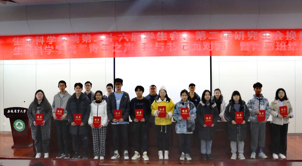 本网讯12月15日中午,生命科学学院在图书馆二号报告厅举办第二十六届学生会、第二届研究生会换届大会,2021百年青马班结业仪式暨“青年之声·我与书记面对面”活动,院党委副书记、副院长闫大玮,院团委老师,上一届优秀学生会、研究生会代表及新一届学生会、研究生会全体成员参会,2021年青马班全体学员参会。