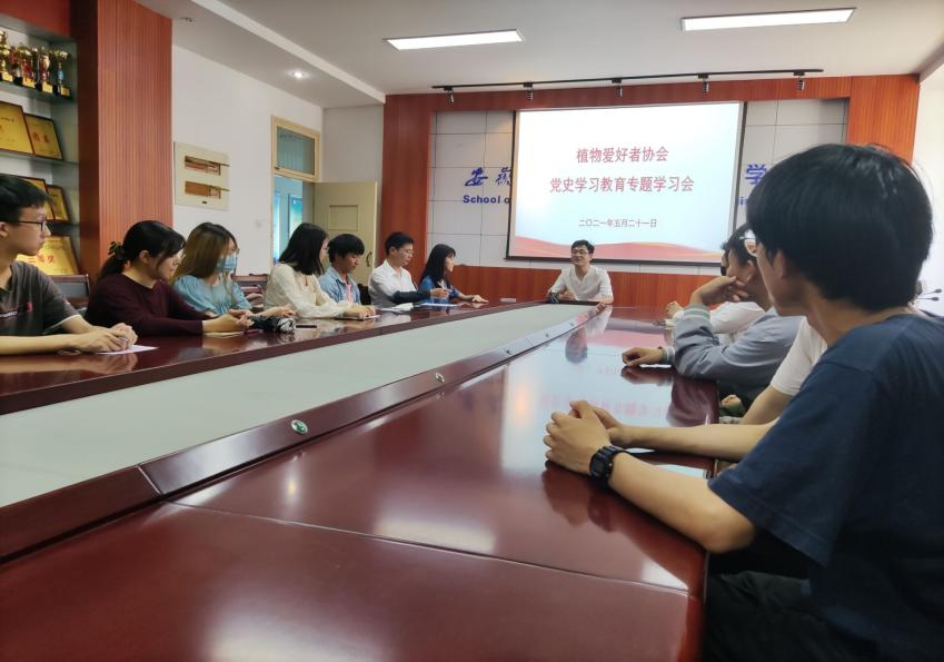 为了深入贯彻党史学习教育,认真落实“学党史、强信念、跟党走”主题教育文件精神,充分发挥宣讲团作用,强化学院团委与指导社团之间的联系,让社团成员更深入地了解中国共产党走过的百年光辉历程和历史性贡献,明确自身所肩负的责任,生命科学学院团委于5月21日中午在十教418会议室举行植物爱好者协会党史学习教育专题会,植物爱好者协会主要学生干部参加了专题学习。
