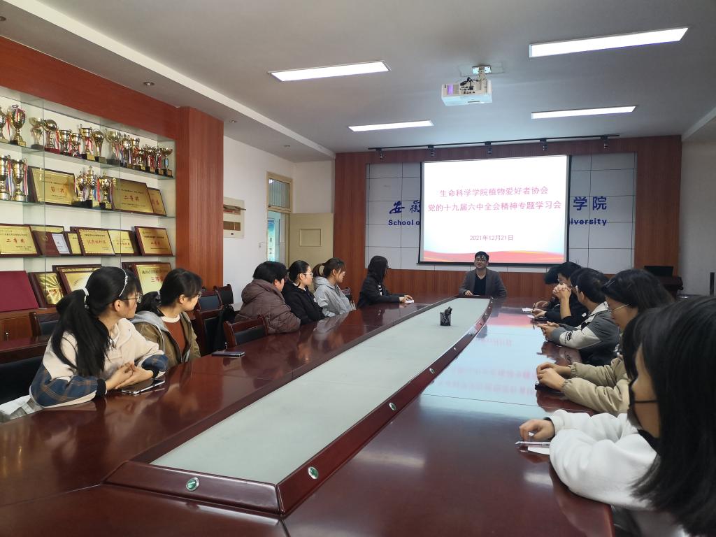 本网讯 为深入贯彻学习党的十九届六中全会精神,认真落实学习宣传贯彻党的十九届六中全会精神,充分发挥宣讲团作用,强化学院团委与指导社团之间的联系,让社团成员更深刻领会全会精神的丰富内涵与核心要义,生命科学学院团委于12月21日中午在十教418会议室举行党的十九届六中全会精神专题学习会,学院团委中心组成员、植物爱好者协会主要学生干部参加了会议,会议由学院团委副书记韩天才主持。