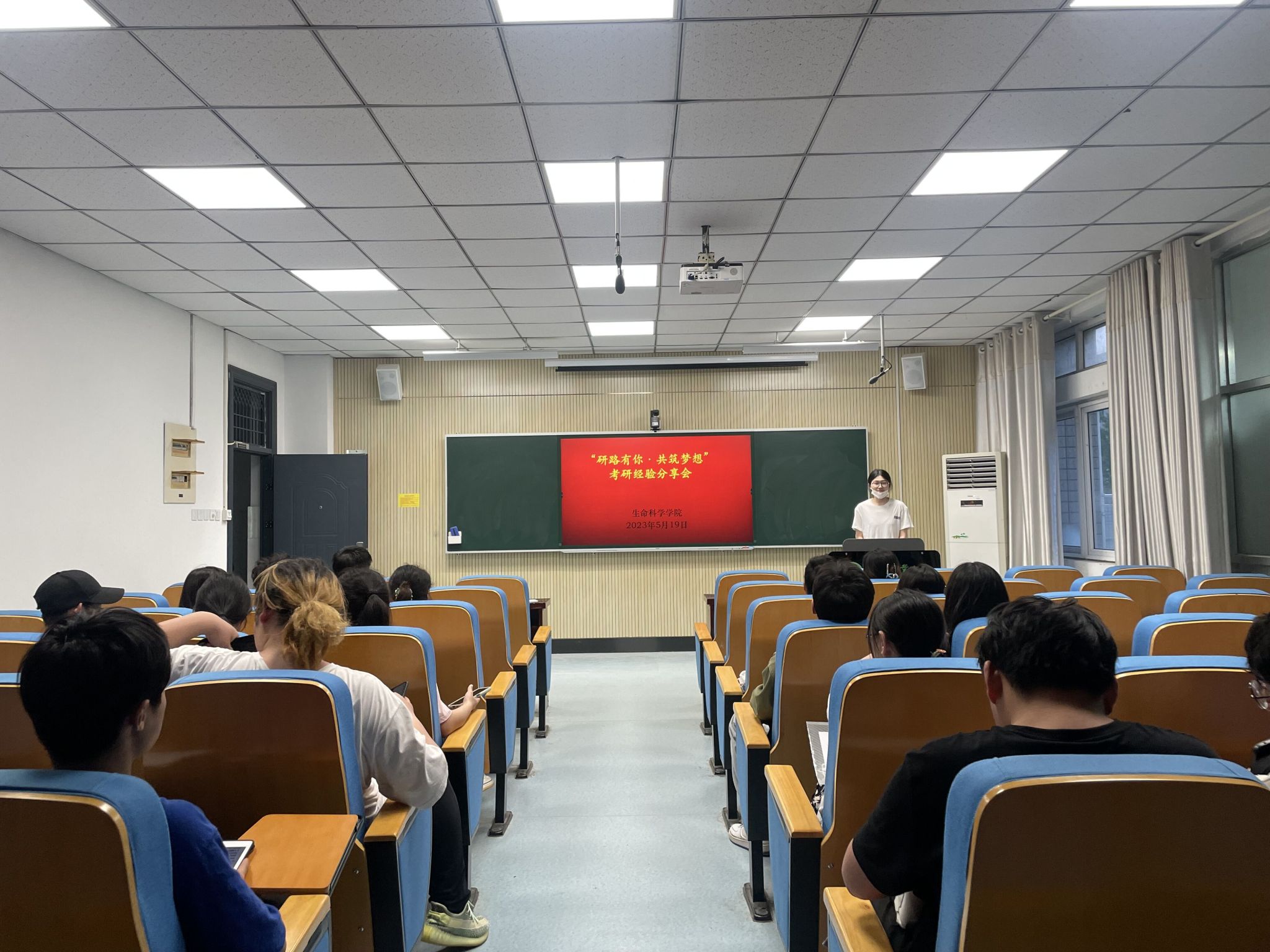 本网讯 为帮助同学们充分考研备考,解答同学们心中对于考研的疑虑。生命科学学院团委于5月19日晚在十教216报告厅举行考研经验分享会。参与本次分享会的有2019级生物科学专业的朱佳宁同学,2019级生物技术专业的管燕芳同学,2019级生物制药专业的汪思怡同学。2020级共计60余名同学参加了分享会,会议由学院团委负责人主持。