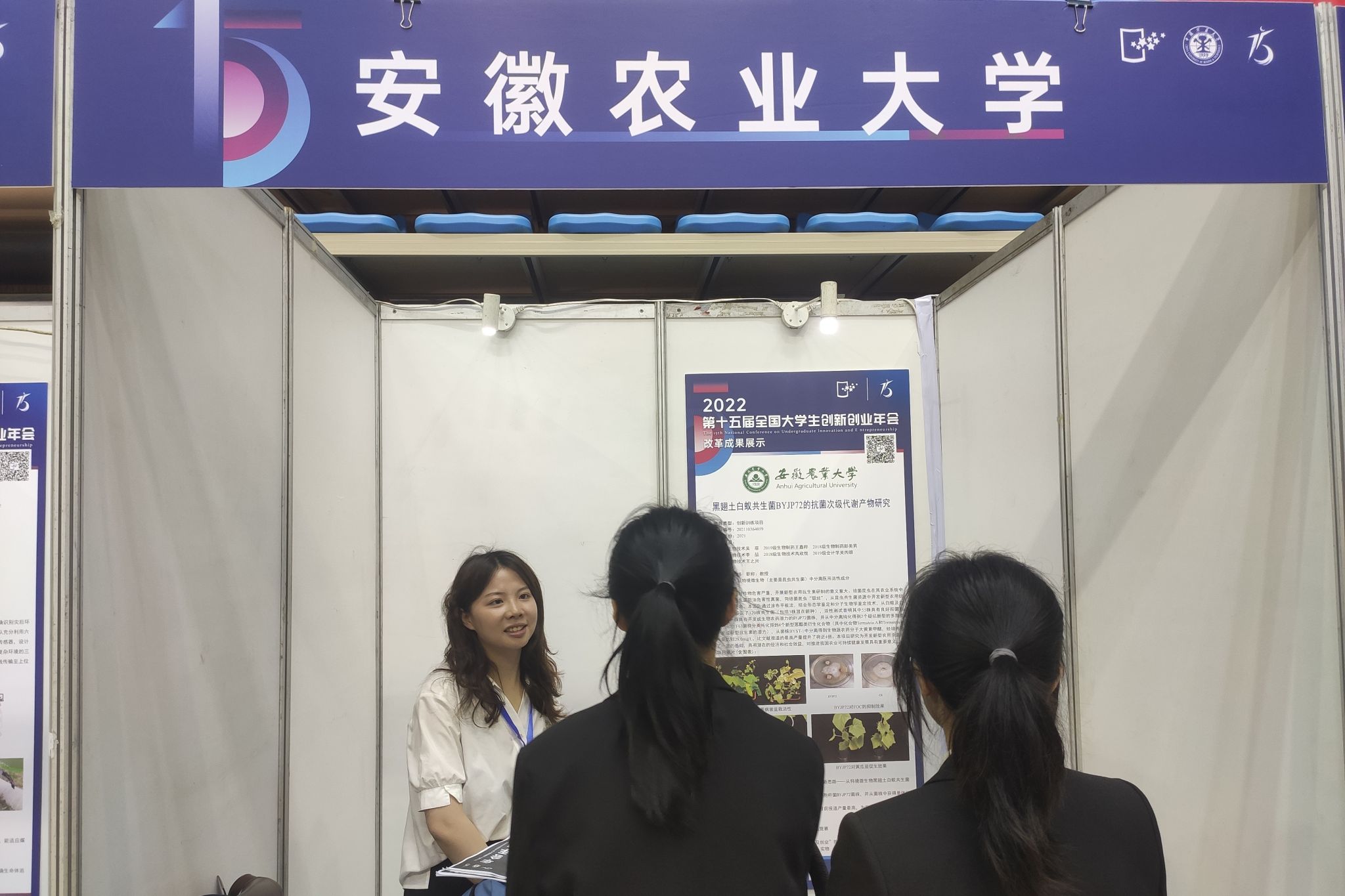 本网讯 5月13日,第十五届全国大学生创新创业年会在中国矿业大学南湖校区隆重召开。本届年会共收到部属高校和地方教育主管部门推荐项目872项,经过相关学科专家初评、“国创计划”专家工作组复选,遴选出参加第十五届全国大学生创新创业年会的学术论文195篇,改革成果展示项目243项、创业推介项目70项,共计508项。我院吴菲同学主持的大创项目“黑翅土白蚁共生菌 BYJP72 的抗菌次级代谢产物研究”入选改革成果展示项目,是我校在本届年会唯一入选的项目。