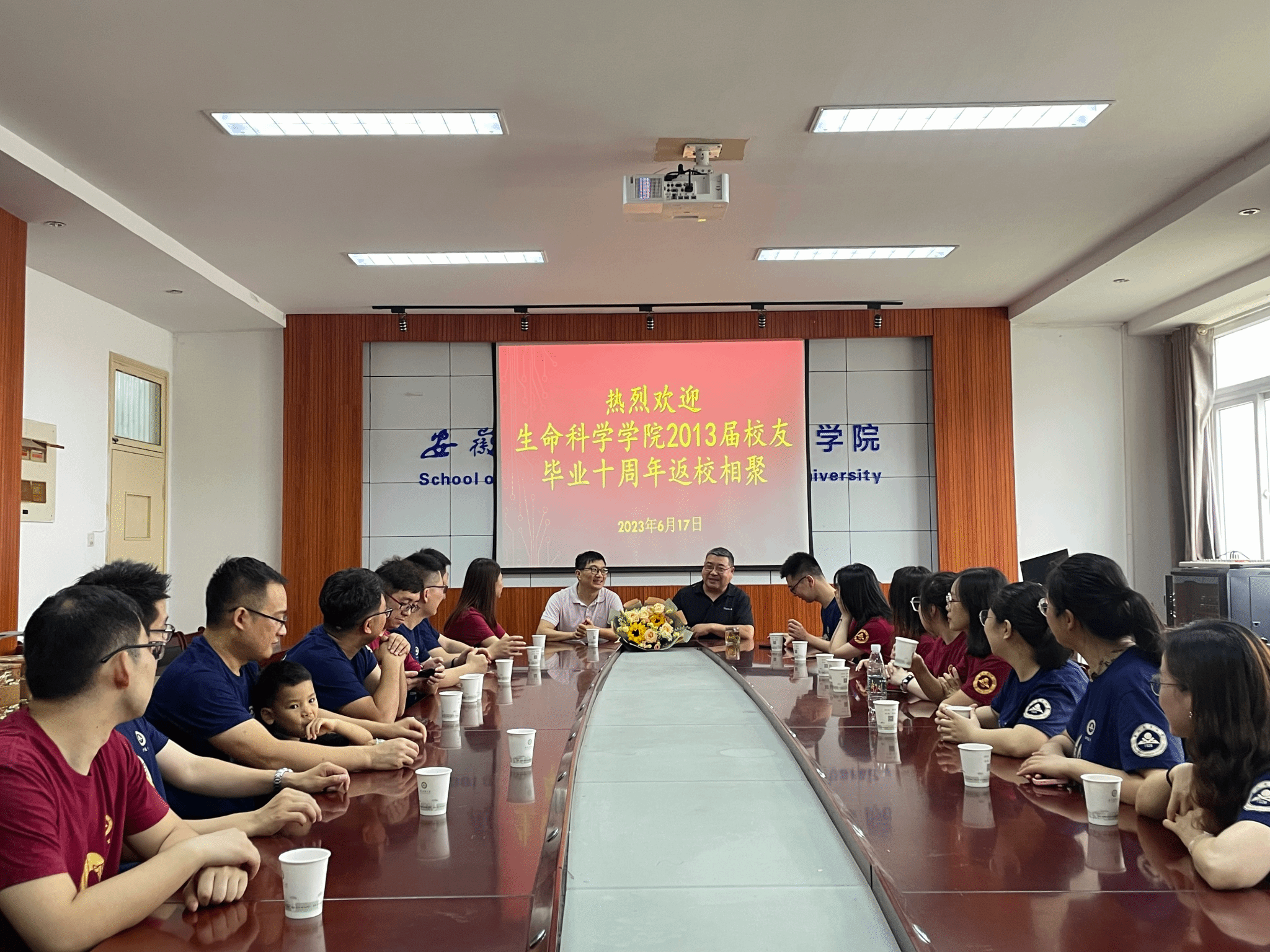 本网讯 6月17日下午,生命科学学院生物技术专业2013届校友齐聚母校开展毕业十周年庆祝活动,院党委副书记闫大玮在学院418会议室热情接待了校友一行。