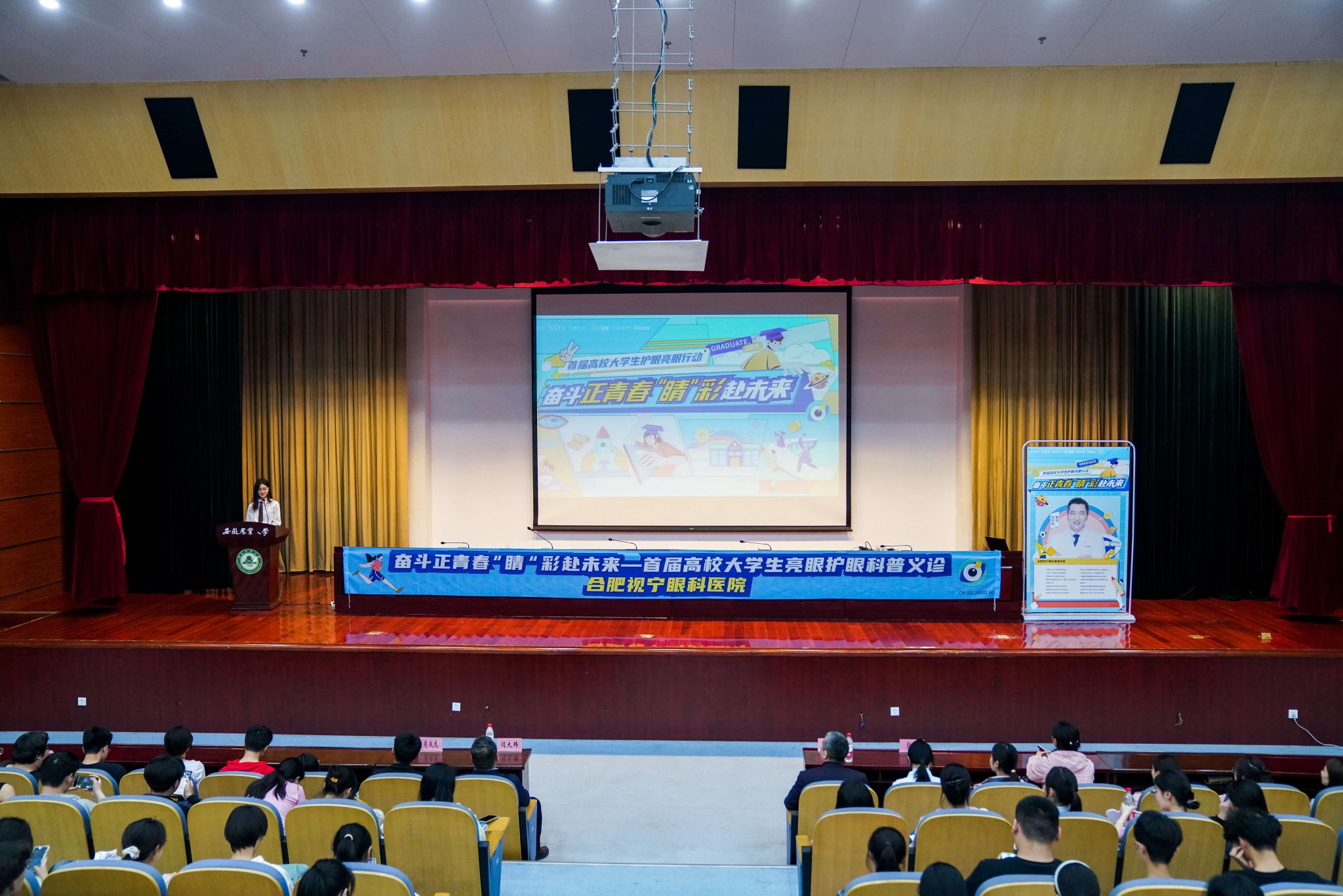 晚上,在校图书馆第一报告厅举办了专题讲座。教育部安徽省综合防控儿童青少年近视防控宣讲团专家、安徽省近视预防治疗研究会副会长、合肥视宁眼科首席专家刘才远教授作专题讲座。中国青年报社运营中心总监肖成龙、生命科学学院党委副书记闫大玮出席活动并致辞,全校200余名学生参加了活动。