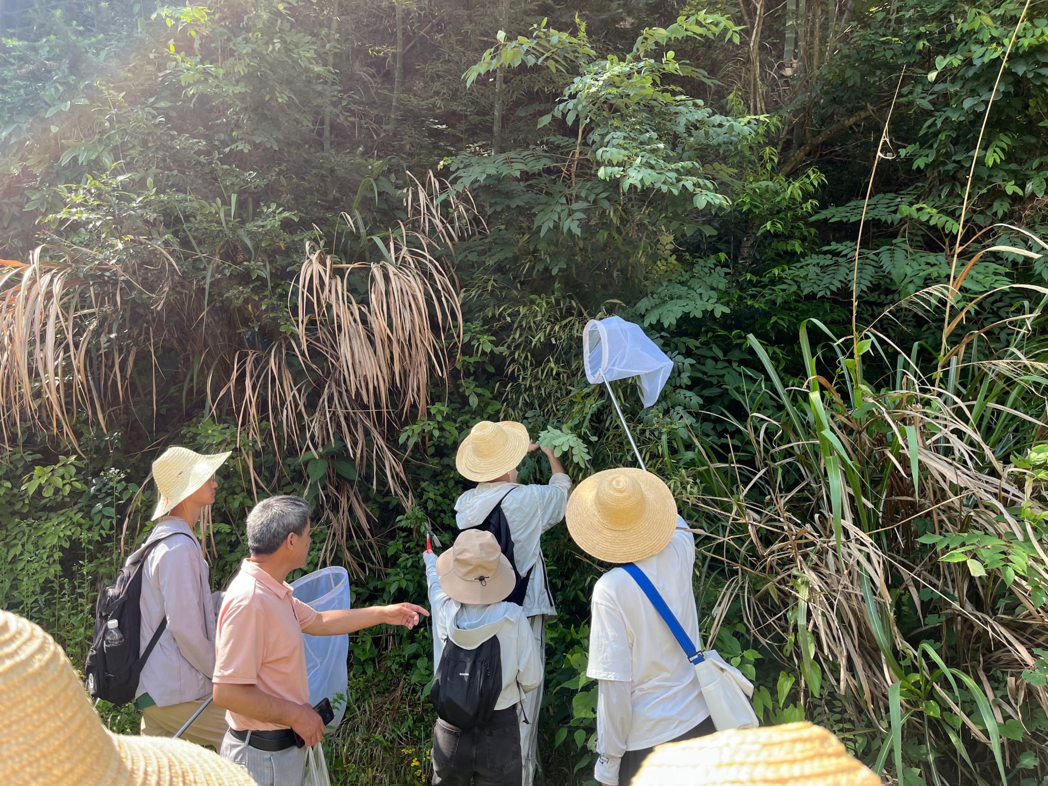 带队教师刘学诗同样用“沉浸式”学习法讲授昆虫知识,同学们纷纷围在刘老师身边聆听讲解。“在刘老师的指导下,我捕捉了好几只从未见过的昆虫,在这里我学到了课堂和书本以外的知识,切实感受了大自然的奇妙和物种的多样性,感谢学院和老师给了我这样宝贵的学习机会”22级应用生物科学专业学生李志嘉兴奋的说到。