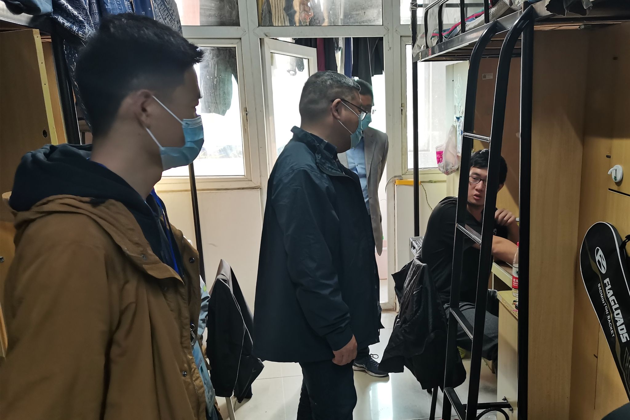 走访过程中,院学生工作负责人细致询问了同学们对于生活起居、宿舍环境、疫情防控、学习状态、思想政治、学业规划等方面的想法,介绍了当前疫情防控的新要求新变化。对干净整洁宿舍的同学们提出了表扬,对宿舍卫生环境状况较差的宿舍同学提出了整改要求,并嘱咐同学们,在生活、学习上遇到困难时,要及时与老师沟通联系。在与同学们交流过程中再次强调疫情防控的重要性,并分析学校近期的管理规定,鼓励同学们要努力学习,更要强健体魄,树立青春活力的大学生形象。同时,要求各位辅导员要时时关注学生、爱护学生,要经常深入学生宿舍,把学生工作做到平时的工作细节之中,切实做到以学生为中心,主动关心关爱学生,为同学们在校学习和生活创造良好的环境。
