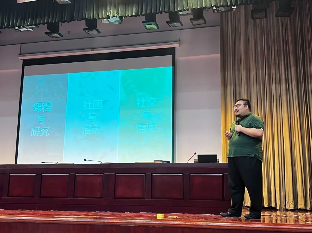 特约主讲人姚宇西从大学学习方式的变化切入,为同学们带来了精彩的开学第一课——大学生涯规划。他重点讲述了“高中的课堂是知识性的,大学的课堂是素质性的”这一本质变化,并从课程与研究、社团与活动、社交与感情、考研与就业等方面为新生提供了可供参考的努力方向。