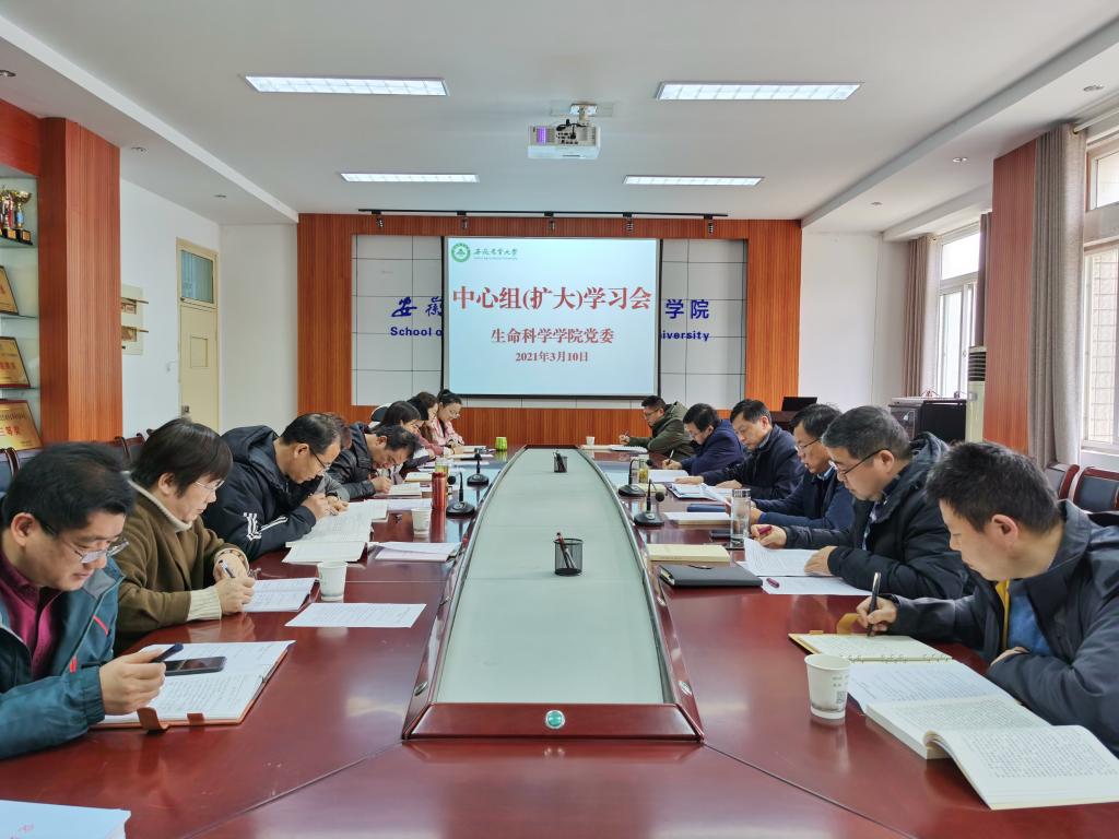 本网讯 3月10日下午,生命科学学院在十教418会议室召开党委理论学习中心组(扩大)学习会,学院党政领导、党委委员、党支部书记参加会议。会议由学院党委书记甘传鹤主持。