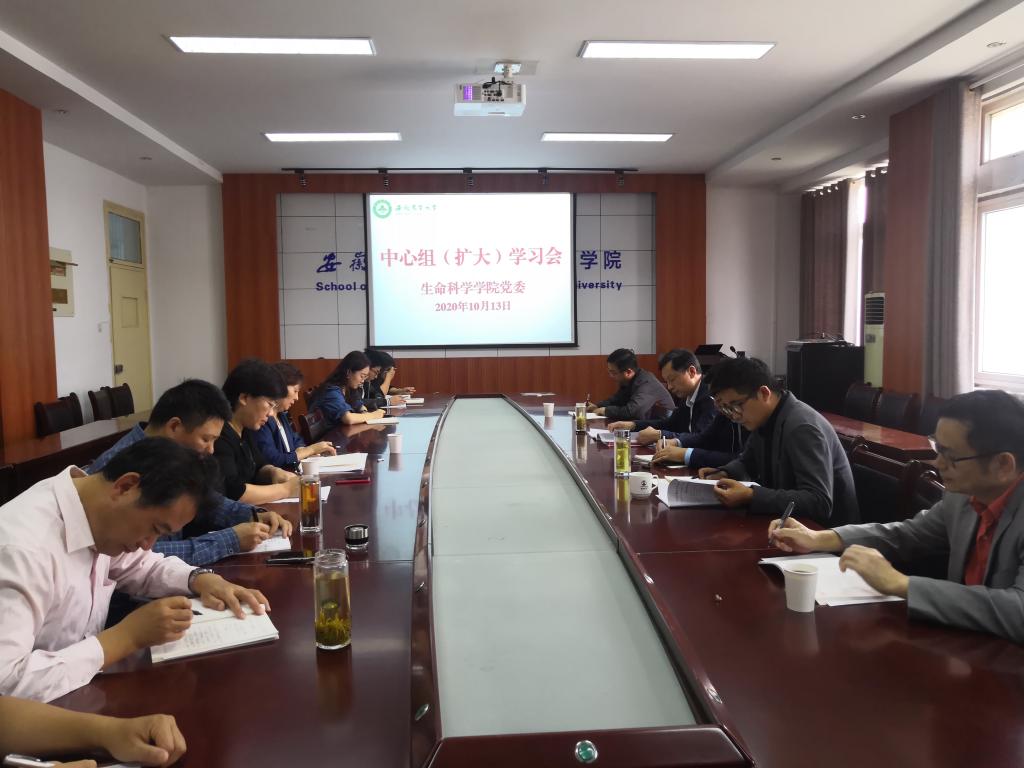 本网讯 10月13日下午,生命科学学院在十教418会议室召开党委中心组(扩大)学习会。学院党委委员、党支部书记参加会议。会议由学院党委书记甘传鹤主持。