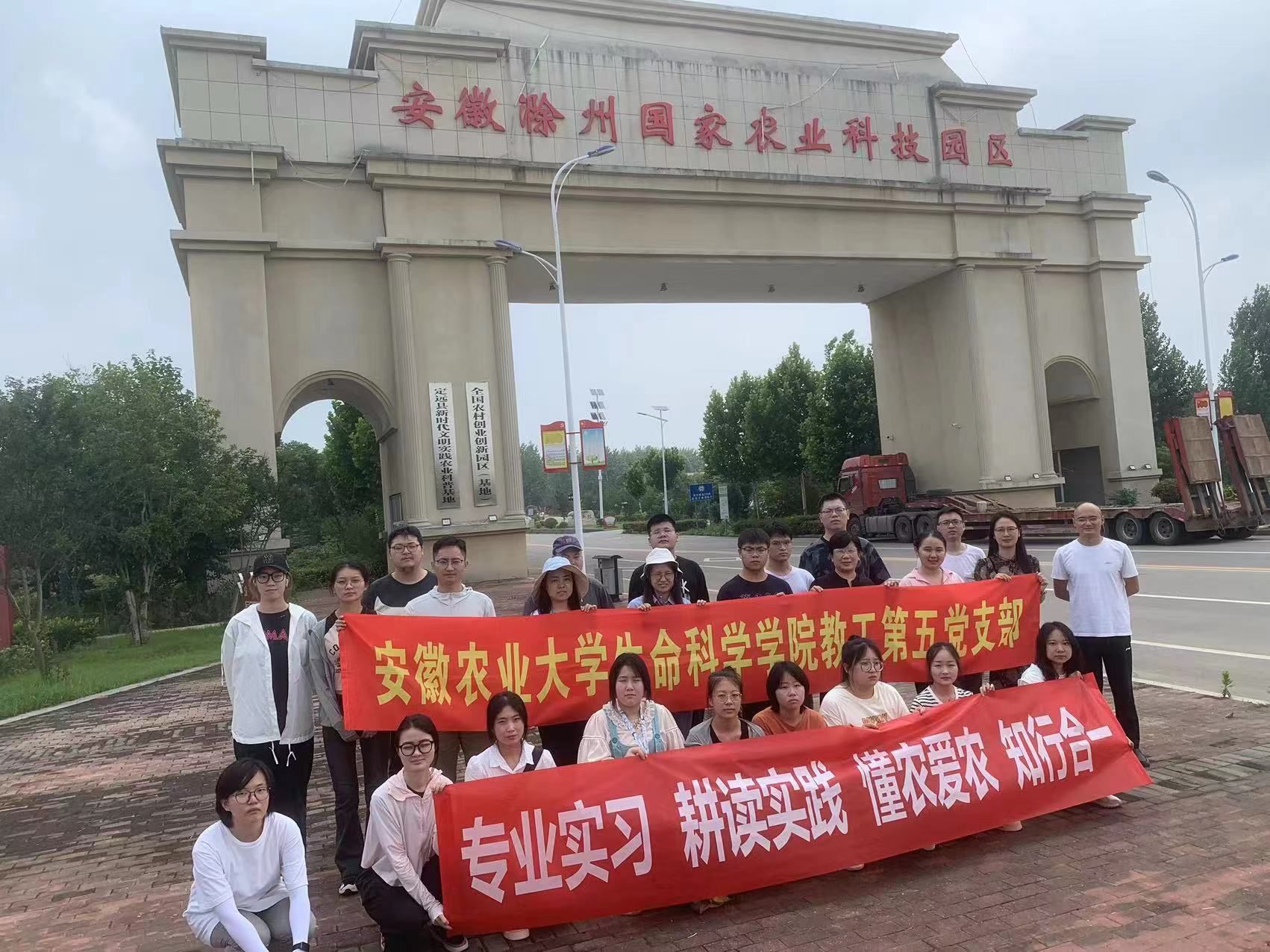 在安徽滁州国家科技园区,支部一行看望了正在开展专业实习和农耕教育实践的20级生物科学专业的同学,一同参观了安徽农业大学江淮分水岭综合试验站,走在园区,看着硕果累累,听着试验站发展建设历程,大家深切感受到只有怀有“三农”情怀为本色的知农爱农才能强农兴农。