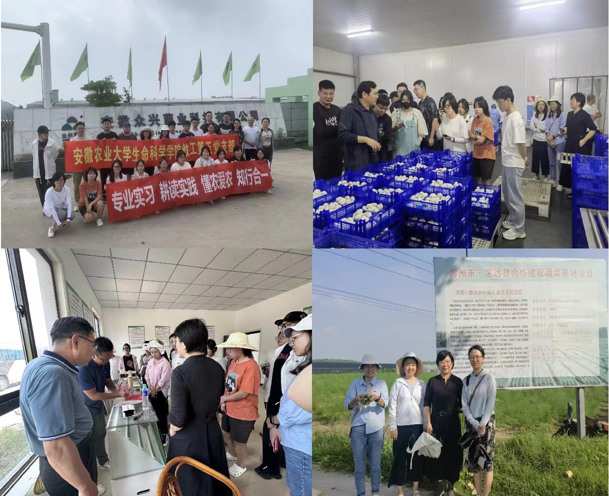 接着相继到安徽众兴菌业科技有限公司、定远县范岗乡的卓众农业专业合作社和悦馨家庭农场开展调研,深入了解食用菌、芦笋和火龙果的生产情况和技术需求,大家走在田间地头,深入农业生产第一线,边学习农业生产知识,边开展耕读教育,理论联系实际、教学结合生产,以知促行、以行补知,知行合一,在耕读教育中感受着“耕读传家”的文化传统,厚植三农情怀。