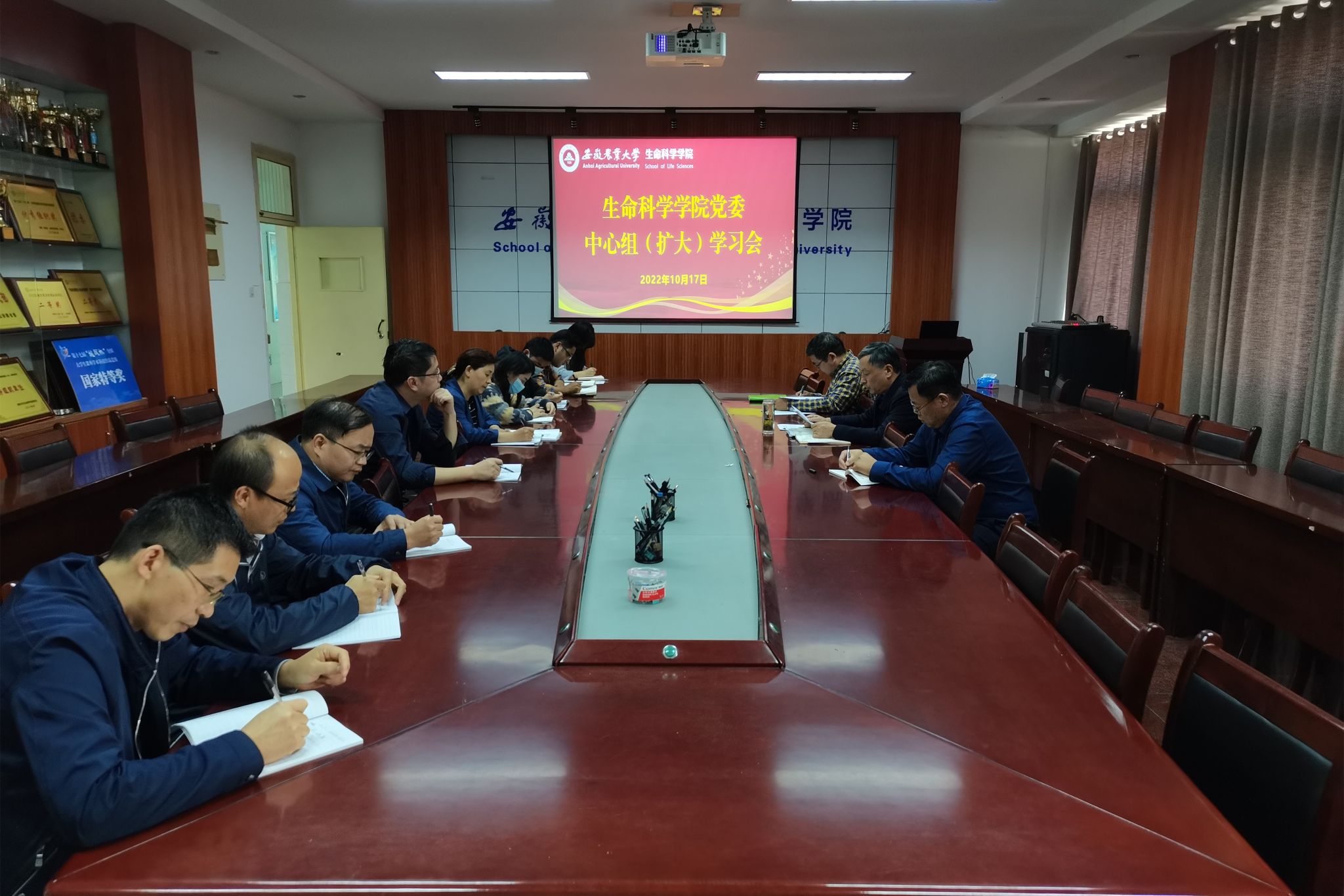 本网讯 10月17日下午,生命科学学院召开党委理论学习中心组(扩大)学习会。学院党政领导、党委委员、纪委委员、党支部书记参加会议,会议由学院党委书记甘传鹤主持。