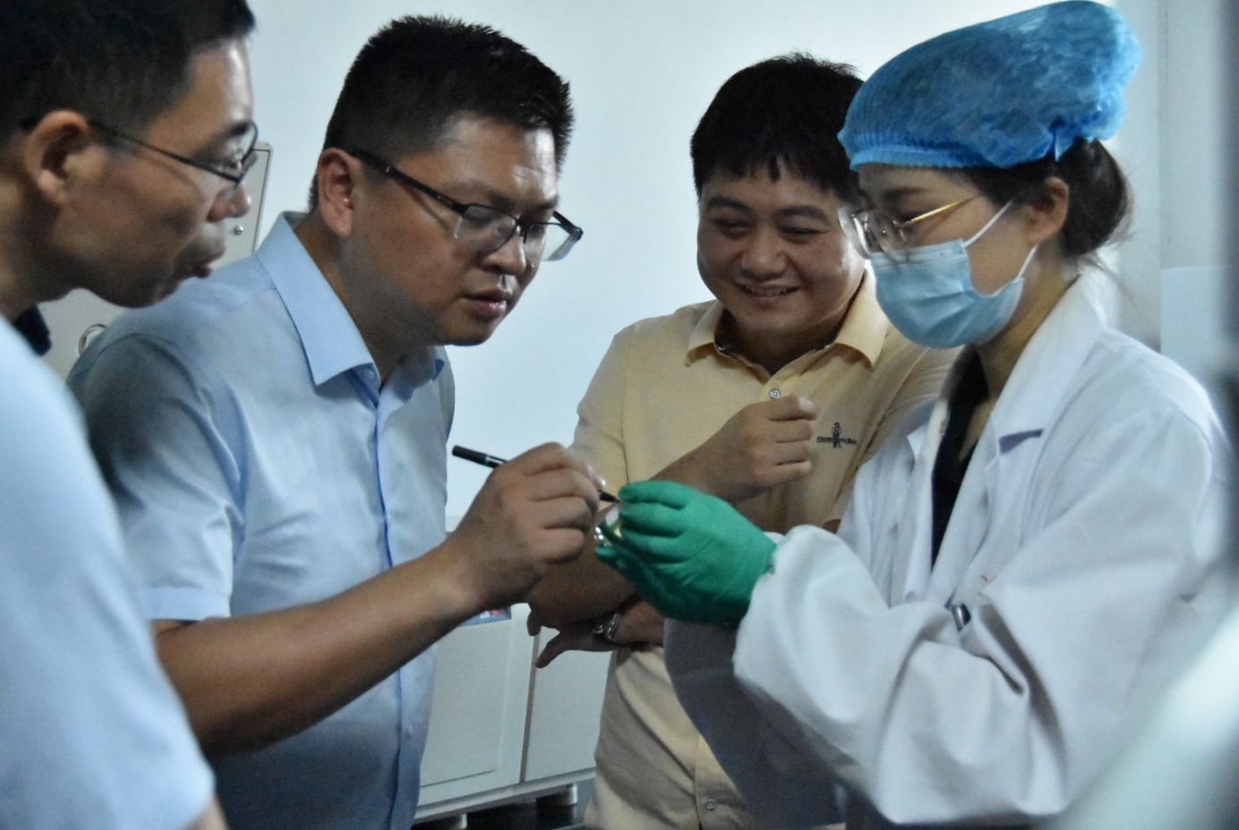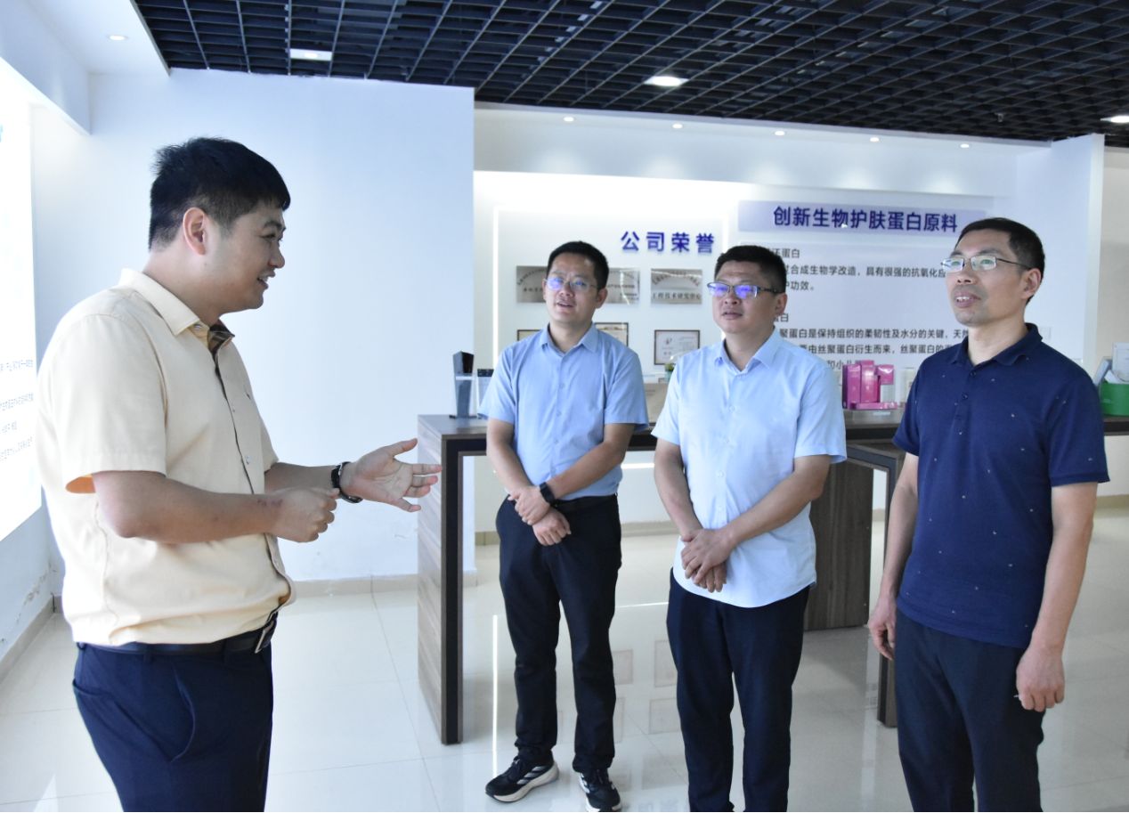 随后,曹雷、薛挺一行参观了公司研发中试平台和“合成生物种子银行”。公司研发人员、校友孙童童现场演示了重组人源化Ⅲ型胶原蛋白耐热稳定性试验。英特菲尔公司在负责人赵俊博士的带领下,通过科研创新、制备出长效稳定性的胶原蛋白(DSC检测变性温度可达100℃),该项技术目前国际领先。