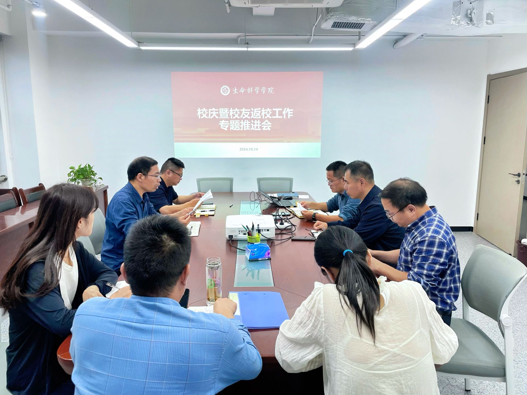 本网讯 10月14日下午,生命科学学院在1810会议室召开校庆暨校友返校工作专题推进会。学院党政领导班子和校友分会工作组成员参加会议。