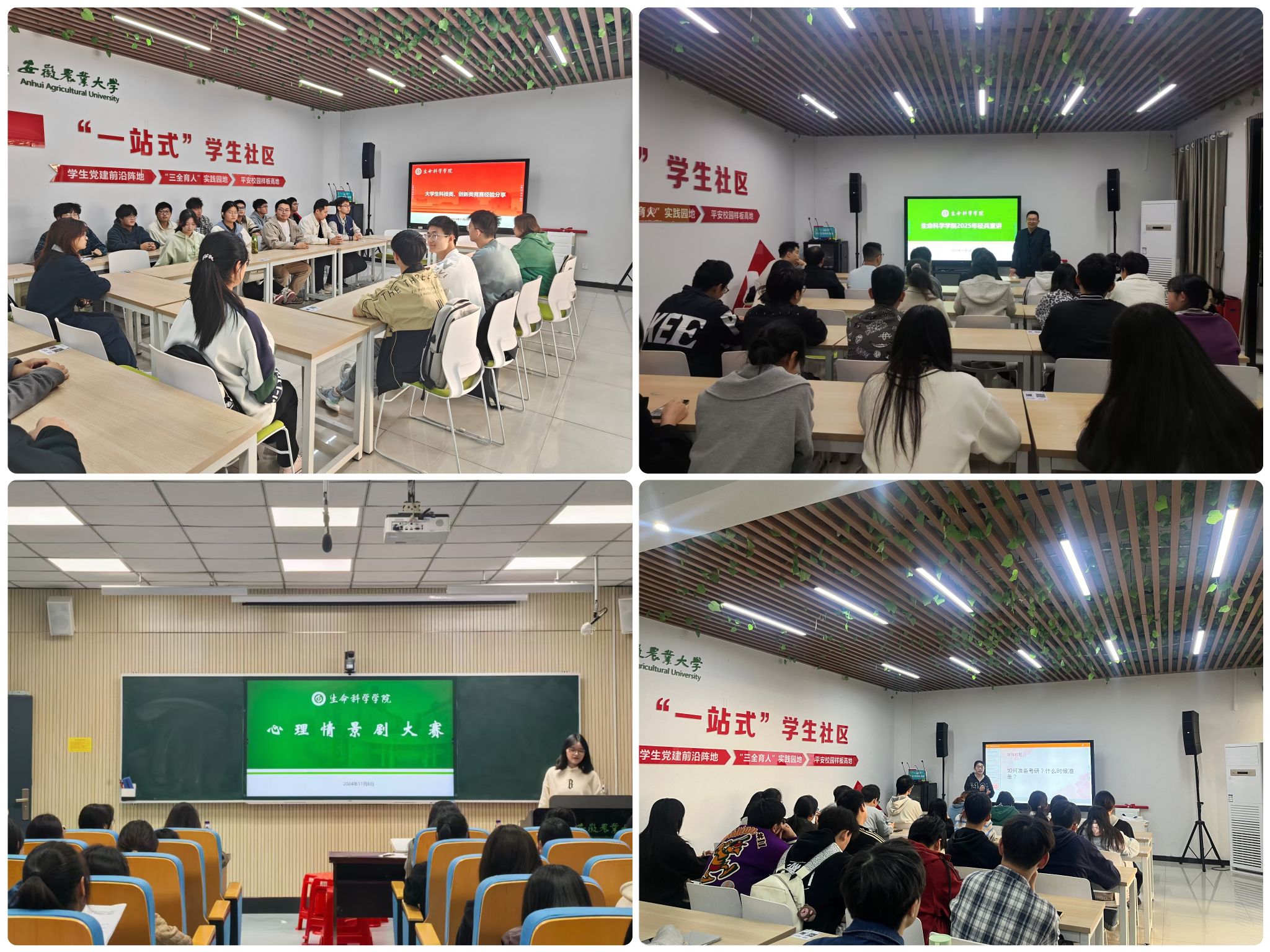 青春舞台,对话心灵 学院在11月6日晚举办了“一站式”系列活动—心理情景剧大赛决赛。本次比赛以“扶光愈‘农’,‘剧’焦青春”为主题,旨在通过心理剧的形式,更好营造师生心理健康教育的良好氛围,丰富大学生校园文化生活,提升大学生心理健康素质。一个个心理故事被同学们精彩纷呈的表演出来。演员们用生动的肢体语言、真挚的情感演绎,让大家仿佛置身其中,感同身受。经过激烈比拼,《晴野稻歌》凭借出色表现摘得桂冠。此次活动不仅是一场视听盛宴,更是一次心灵的洗礼。比赛是次要的,但更重要的是,让大家对心理健康有了更直观深刻的认识,进一步推动了校园心理健康知识的普及,相信其积极效应将在校园里持续发酵,也希望同学们以正能量的心态,不忘初心奋勇前进活出自信又张扬的青春时光!