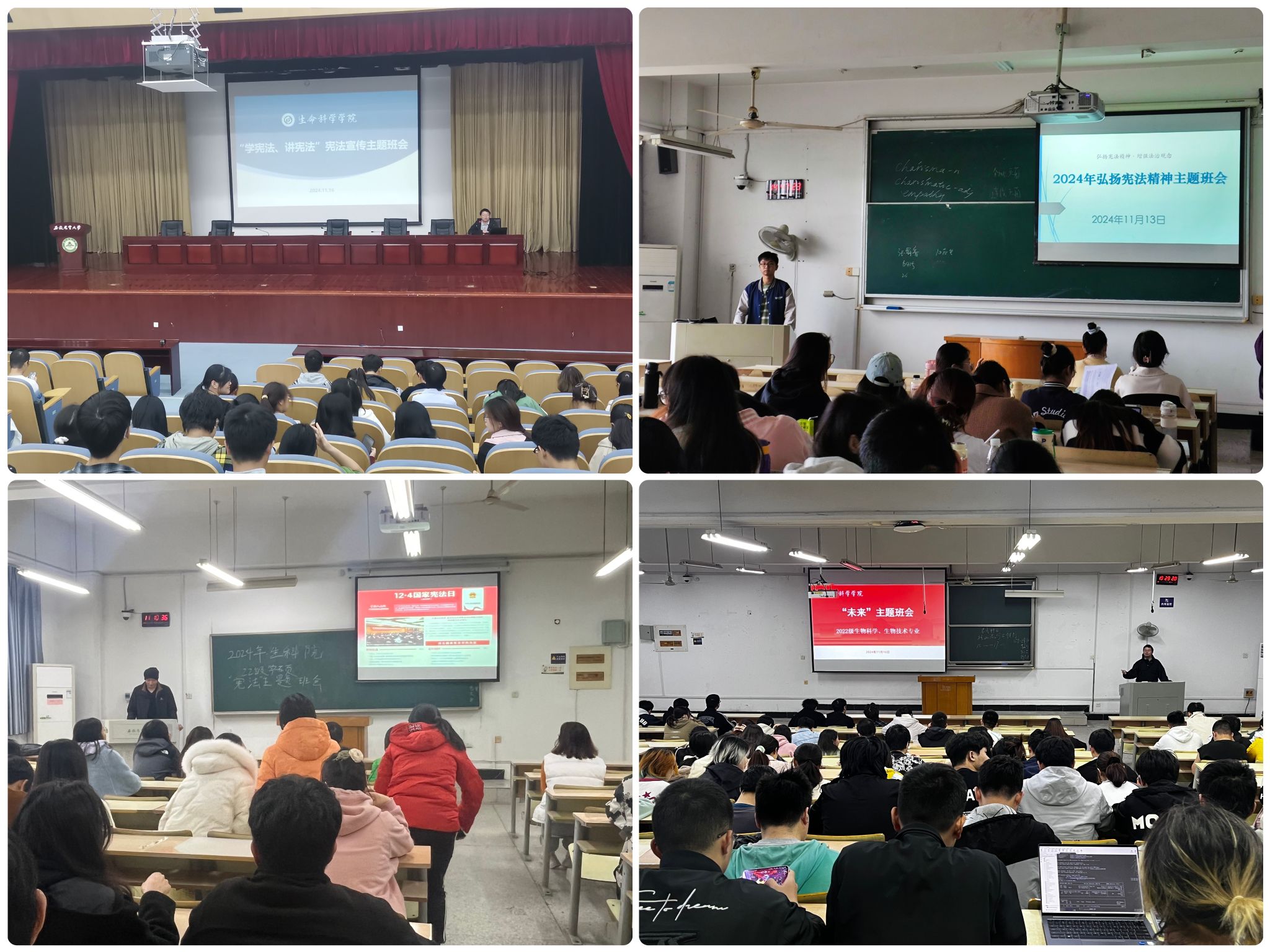 本网讯 为全面贯彻落实党的二十大精神和二十届三中全会精神,认真学习宣传习近平法治思想,深入学习宣传宪法,弘扬宪法精神,维护宪法权威,生命科学学院本科生、研究生各班纷纷开展了“学宪法,讲宪法”主题班会,加强青年大学生宪法法治教育,促进学生健康成长、全面发展。