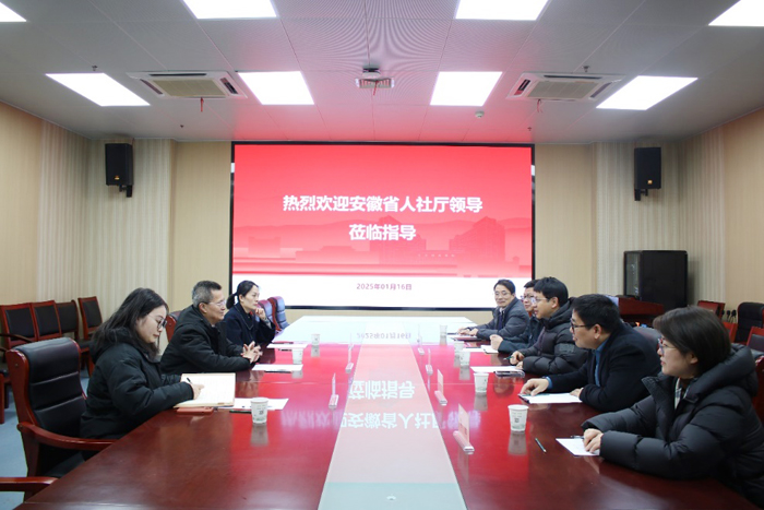 本网讯 1月16日上午,安徽省人力资源和社会保障厅党组成员、副厅长程连政,来校看望慰问学院教授李培金。校党委常委、副校长吴祥为陪同。