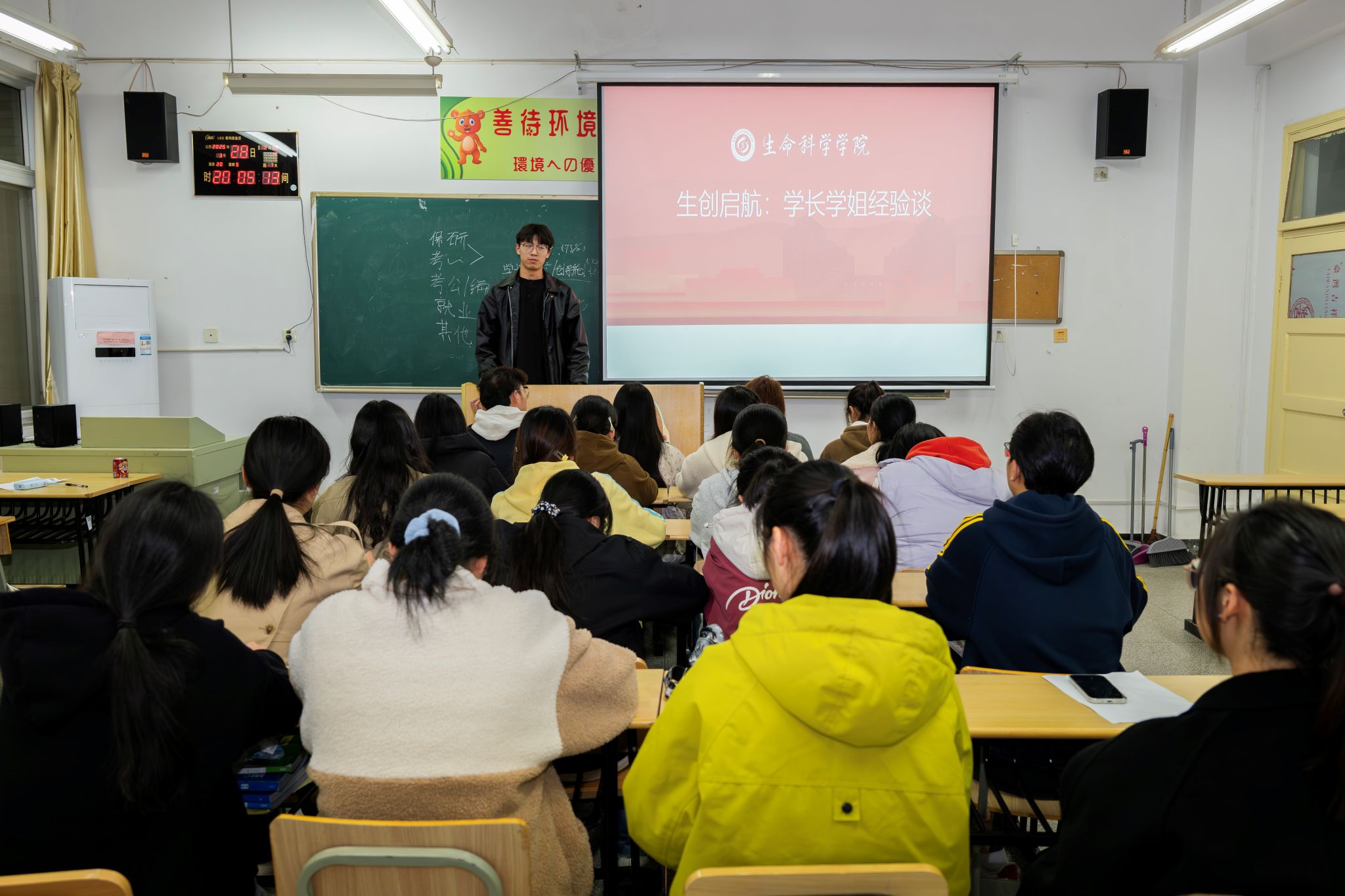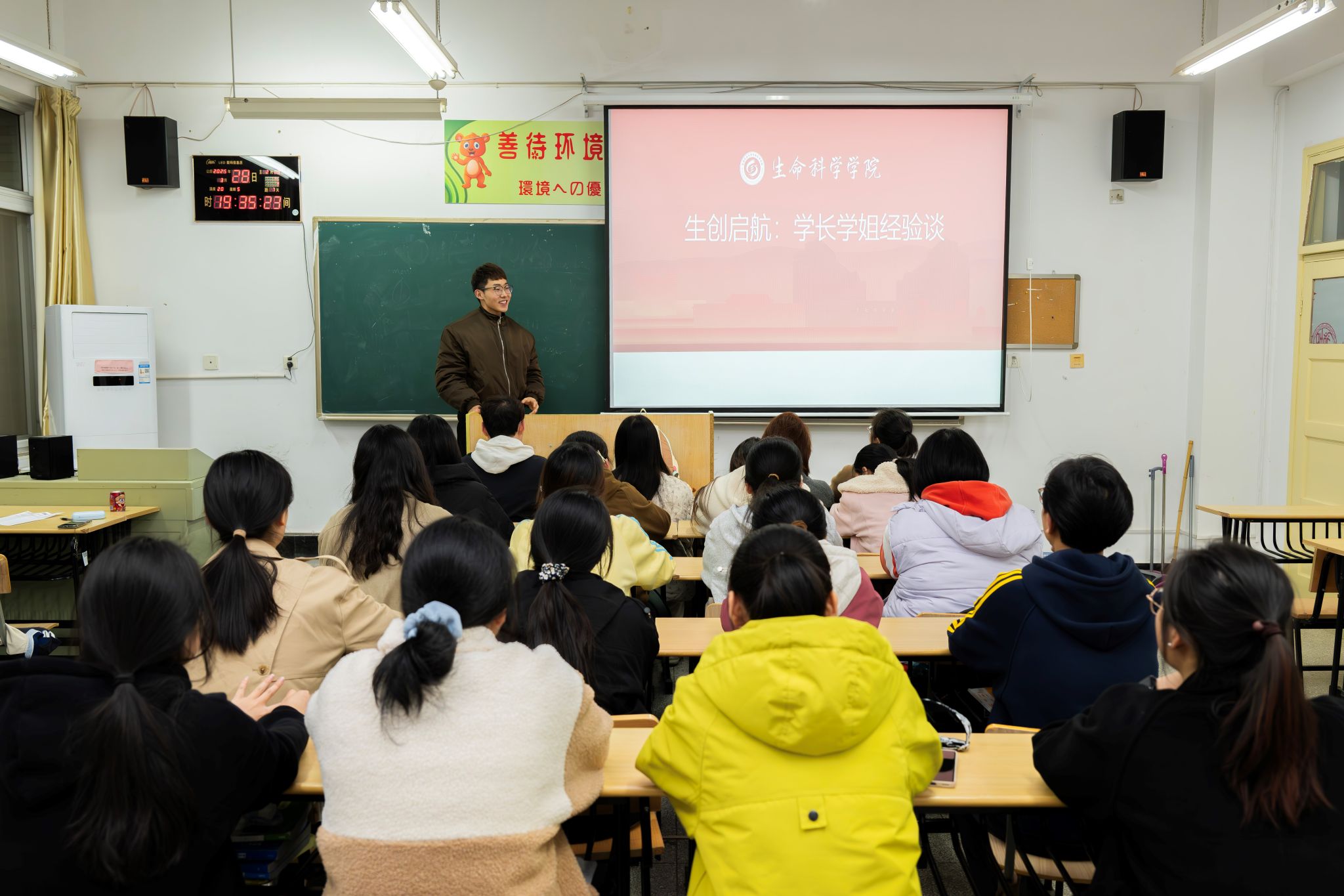 据悉,类似这种特色班会,学院每年都会针对低年级学生开展专业思想教育和学术思维训练,架起新老生传承交流的桥梁,激发生物类创新实验班学子追求卓越的激情。自2011年生物类创新实验班创立以来,学院党委围绕党建高质量发展促事业发展争先进位,在学校创新拔尖人才培养模式上先试先行,形成了学科交叉、科教融合、个性培养、协同育人“四位一体”的培养模式和项目化、竞赛化、导师化“三化融合”的育人机制,学生培养质量不断提升。(文图/卢韵宁、储家武 编辑/程玉磊 预审/闫大玮 审核/曹雷)