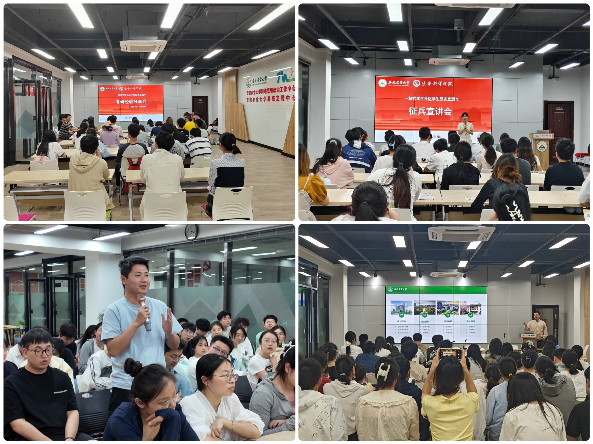 征兵壮志,卫国豪情。4月28日晚,学院征兵工作负责老师与退役大学生士兵代表赴“一站式”学生社区南区,与生科学子展开征兵政策专题交流。活动系统讲解参军入伍的经济待遇、发展前景、退役优待政策及入伍条件,并针对士兵提干、报考军校、党员在军营作用发挥等热点问题现场答疑。退役士兵代表结合自身经历,分享军旅生活,重点强调报名体检注意事项,并鼓励学生把握机遇、锤炼本领,以青春热血投身国防事业,在祖国需要的前沿阵地建功立业。