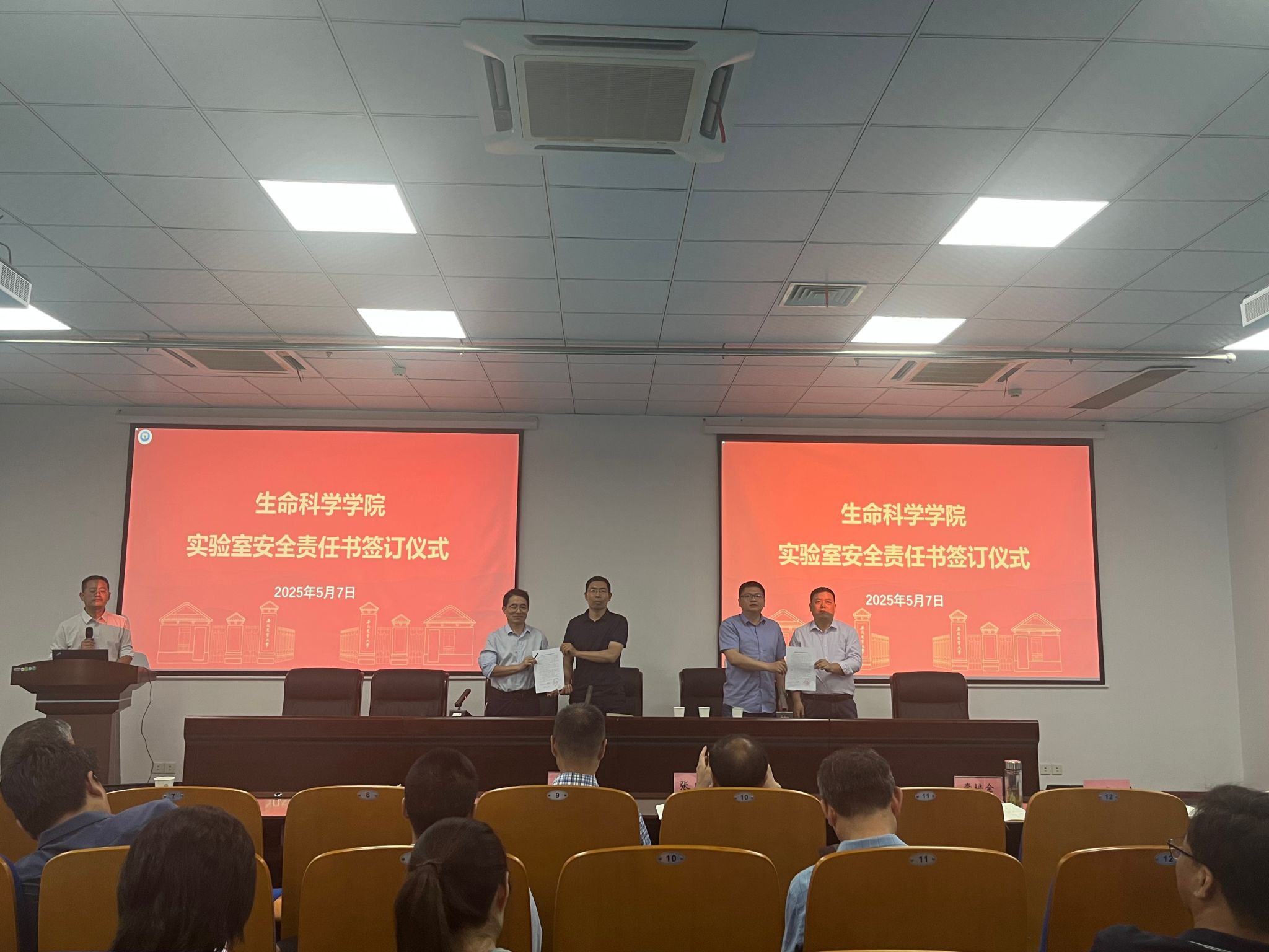 会上,学院党委书记曹雷、院长薛挺分别与各系、作物抗逆育种与减灾国家地方联合工程实验室、农业生物技术国家级实验教学示范中心负责人现场签订了《实验室安全责任书》。