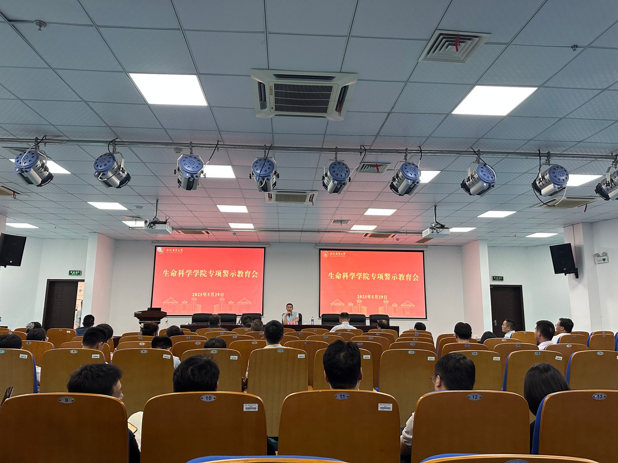 本网讯 5月29日下午,学院在生物科技楼B438报告厅召开专项警示教育大会,学习传达全省深入贯彻中央八项规定精神学习教育学查改一体推进大会精神,开展警示教育,部署专项整治工作。