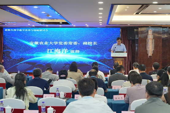 本网讯 为深入交流植物生理学教学经验、推动课程改革与教学创新,由安徽农业大学、中国植物生理学与植物分子生物学学会教育科普工作委员会、高等教育出版社联合主办的“植物生理学教学改革与创新研讨会”于2025年6月14—15日在安徽合肥成功举行。校党委常委、副校长江海洋出席开幕式并致辞。来自中国植物生理学与植物分子生物学学会、高等教育出版社,山东大学、兰州大学、河北农业大学、中国科学技术大学、华中农业大学、西北农林科技大学、华南农业大学等全国30所高校的植物生理学教师代表齐聚一堂,围绕课程理念更新、教学方法创新、数字资源建设等热点问题展开深入交流,并共同发起成立“植物生理学教学联盟”,教务处和生命科学学院负责同志参加会议。