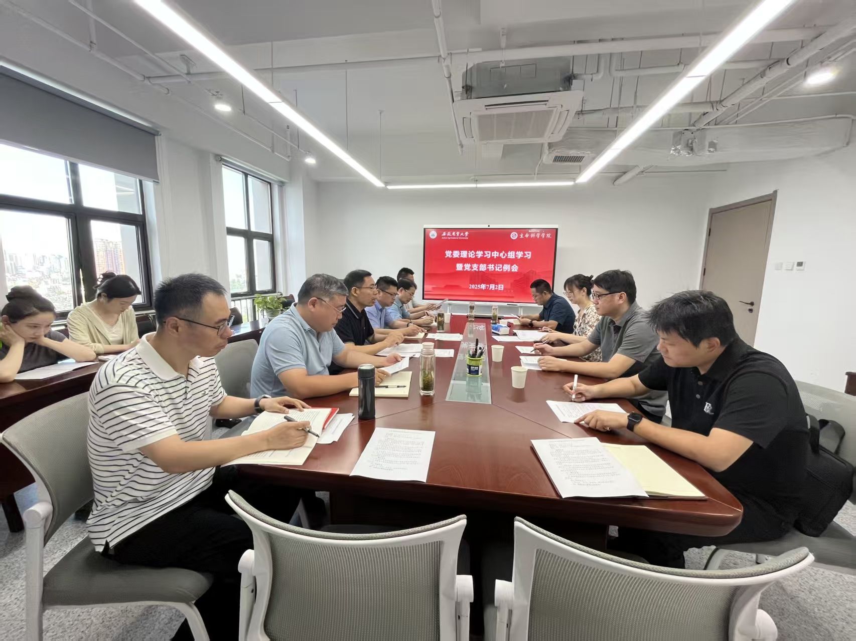 本网讯 7月2日上午,学院在勤业楼1808会议室召开党委理论学习中心组学习会暨党支部书记例会。院党委理论学习中心组全体成员、各师生党支部书记参加会议。