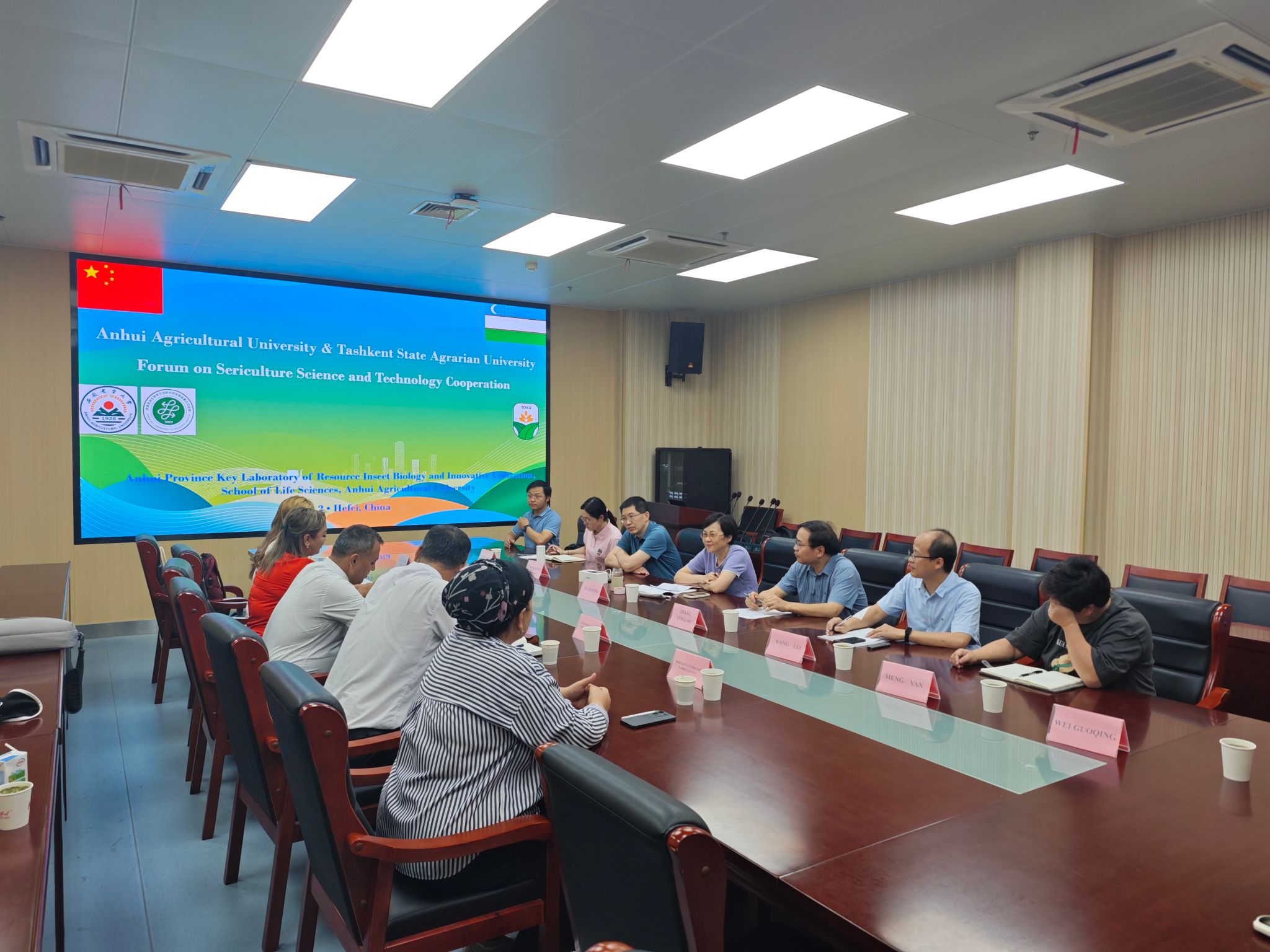 7月9日上午,双方在勤业楼1808举行了隆重的合作签约仪式。资源昆虫生物学创新与利用安徽省重点实验室与塔什干农业大学蚕学与桑树栽培系正式签订了合作协议。此次签约标志着双方在蚕学领域的合作进入了新的阶段,未来将在科研合作、人才培养、学术交流等方面开展全方位、多层次的合作。