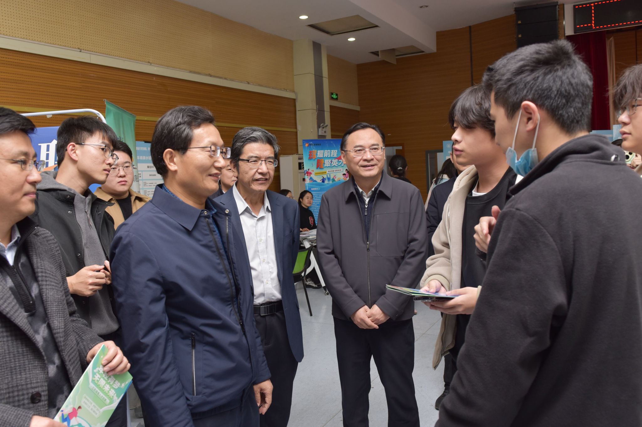 校领导一行深入各企业展位,与企业代表面对面沟通交流,详细了解企业用人需求,希望深化校企协同,拓宽合作维度,推动产教深度融合与多元化共赢发展。在校友企业展位前,张庆亮、操海群代表学校对校友取得的优异成绩表示祝贺,对校友企业长期以来心系母校、在支撑母校高质量发展、搭建学生实习就业平台、助力青年学子成长成才等方面作出的积极贡献表示感谢。
