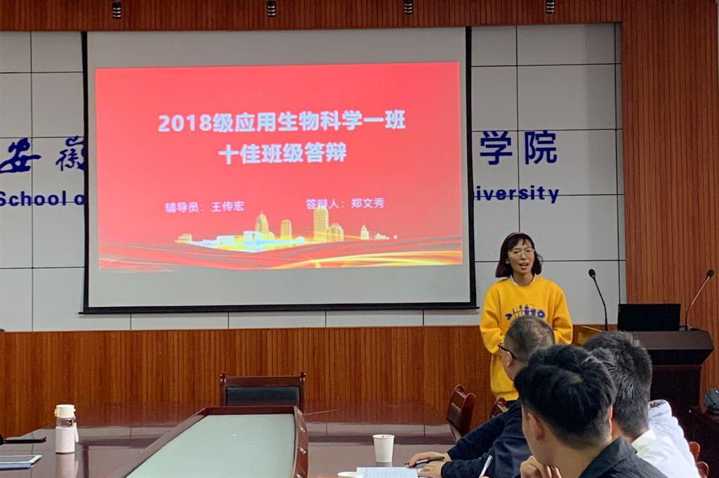 评选现场,各班级采取PPT展示的形式,从班级组织建设、学风建设、班风建设、特色活动等方面总结过去一学年取得的成绩。学院参照《安徽农业大学先进班级和十佳班级评选办法》的规定和要求,进一步完善评选细则,结合班级绩点、信息化考勤、星级文明宿舍、班级活动参与及获奖情况等多方面对参选班级进行综合考量。最终,2017级生物科学1班、2018级生物技术2班、2018级生物类创新实验班、2018级应用生物科学1班、2019级生物技术3班获得先进班级的荣誉称号。