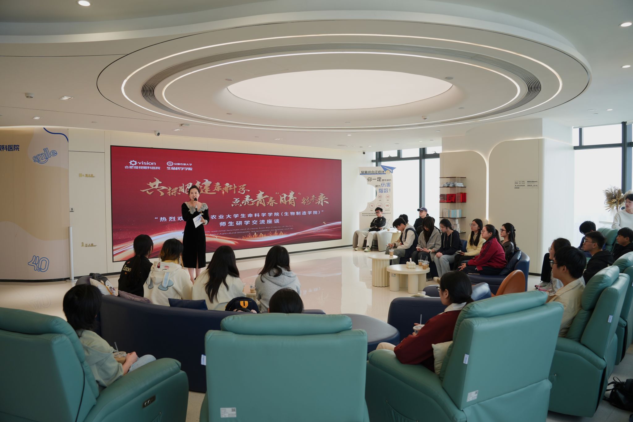 主题团日活动期间,同学们前往维视眼科医院,医疗团队现场为师生开展视力健康检查与科普讲座。专家们通过专业设备检测视力,讲解护眼知识,强调科学用眼的重要性。