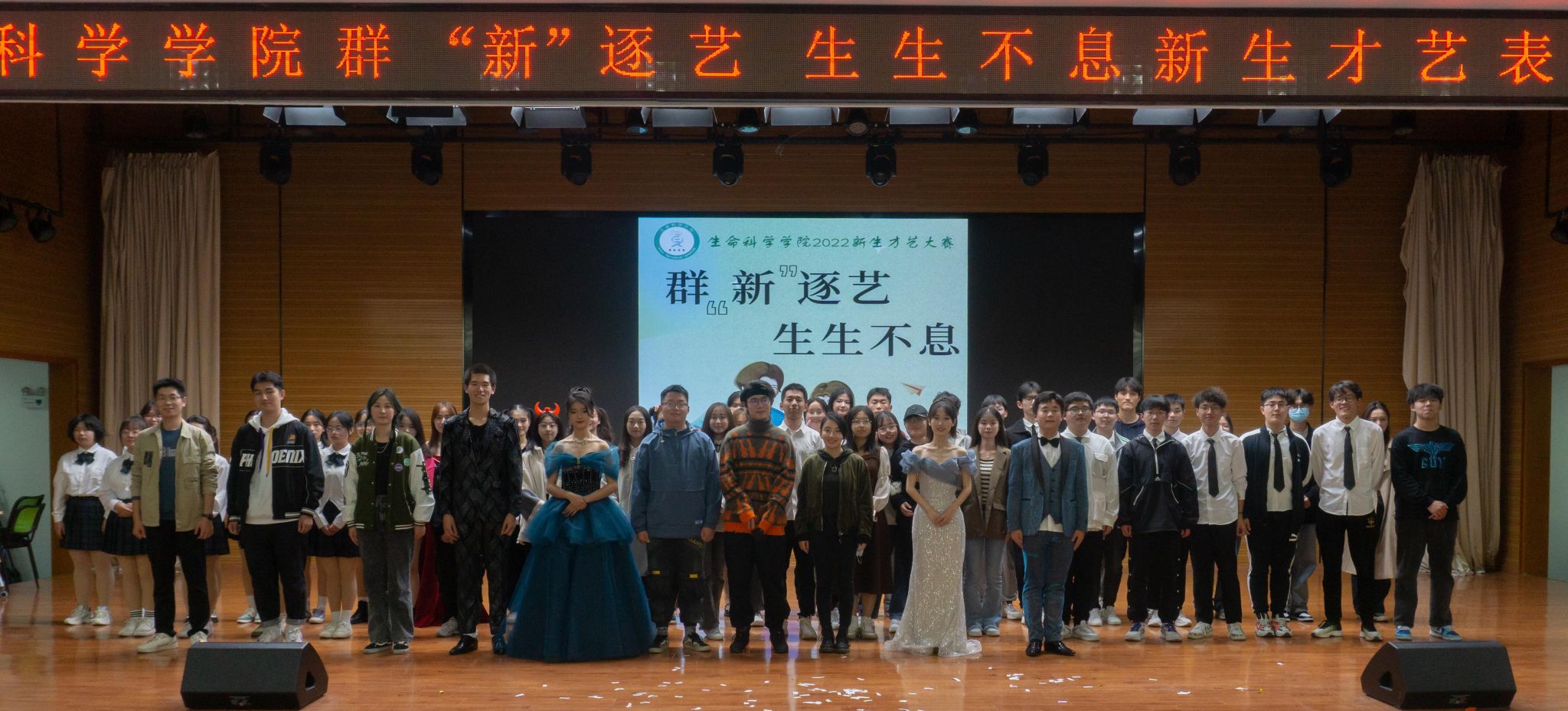 本网讯 11月27日晚,生命科学学院2022年群“新”逐艺 生生不息新生才艺大赛暨表彰大会在欣苑四楼小礼堂拉开帷幕。生命科学学院2022级部分新生观看比赛,学院团委老师出席本场比赛。