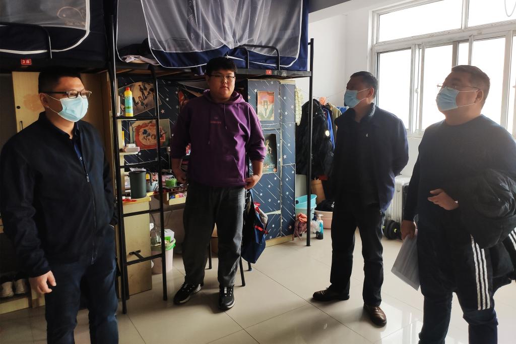 在走访检查中,学院领导详细检查询问了学生的宿舍卫生安全、通风消毒、线上学习以及生活诉求等情况,并就生活、学习、思想、疫情防控等各方面进行了深入的了解和交流。叮嘱同学们要严格自律,加强身体锻炼,养成良好的生活卫生习惯。同时提醒同学们要时刻做好宿舍安全防范工作,增强安全用电意识和防火防盗意识。当前仍是疫情防控的关键时期,学校实行封闭管理,希望同学们加强自我管理、自我教育、自我服务,自觉遵守学校相关规定,养成健康文明、积极向上的生活习惯,营造干净舒适的生活环境。同学们对院领导的关心和关爱表示了感谢。他们表示,要珍惜大学时光,努力学习,不辜负学院领导和老师们的殷切期望。