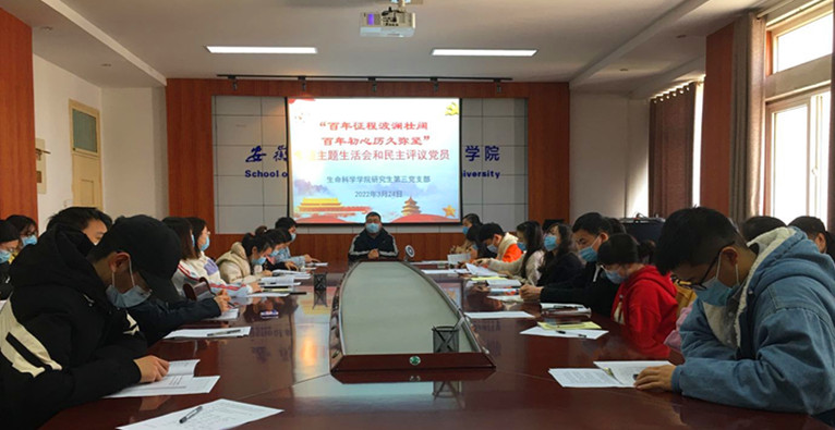 本网讯 3月24日中午,生命科学学院研究生第三党支部在十教418会议室召开2021年度组织生活会暨民主评议党员活动,院党委副书记闫大玮出席会议,全体研究生党员参加会议。会议由支部书记蒋晓春主持。