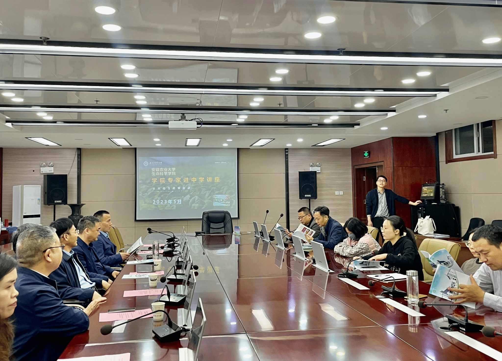 随后,由生命科学学院孙冬冬教授面向阜阳市城郊中学毕业生班主任,开展“学院专家进中学”为主题的招生宣传讲座,通过图文并茂的PPT解说,展示安农大悠久的办学历史、浓厚的学习氛围、优美的教学环境及雄厚的师资力量,重点宣传了学校人才培养优势和强势学科,详细解读了我校的招生政策、报考条件、录取规则等。
