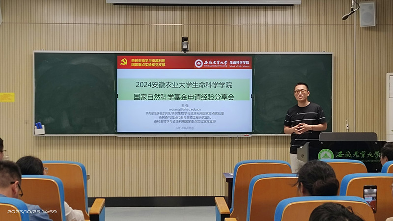 会上,薛挺对学院2023年国家自然科学基金的工作进行了总结并介绍了2024年青年基金申报工作安排。茶与食品科技学院的副教授王强和学院何永军老师分别做了“国家自然科学基金申请经验分享”、“青年基金申报心得体会”主题报告,并就国家自然科学基金申报经验进行交流与分享。