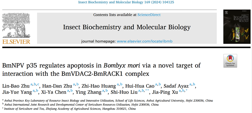 本网讯 近日,资源昆虫生物学与创新利用安徽省重点实验室徐家萍教授团队在国际知名学术期刊《Insect Biochemistry and Molecular Biology》在线发表了题为“BmNPV p35 regulates apoptosis in Bombyx mori via a novel target of interaction with the BmVDAC2-BmRACK1 complex”的研究论文。