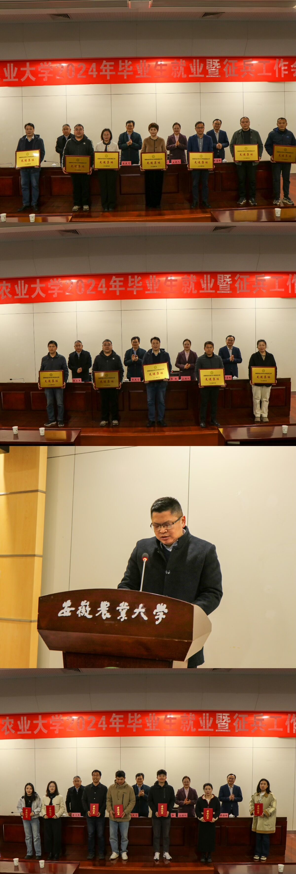 校领导为2023年度招生就业先进集体、征兵先进集体和就业先进个人颁发了奖牌、证书。学院荣获2023年度“招生就业工作先进集体”、“征兵工作先进集体”,李星怡荣获“招生就业工作先进个人”。