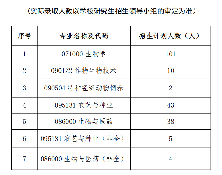 生命科学学院2023年硕士研究生分专业招生计划