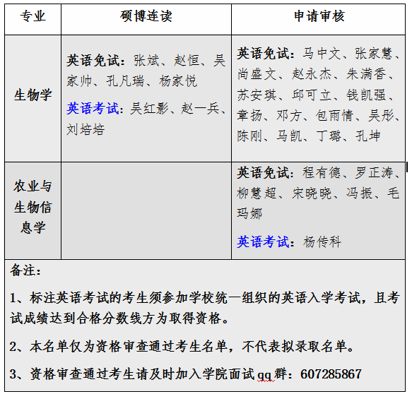 根据《安徽农业大学2023年博士生招生简章》相关规定,经学院博士研究生招生领导小组考核、审定,现将资格审查通过考生名单予以公示,详见下表。